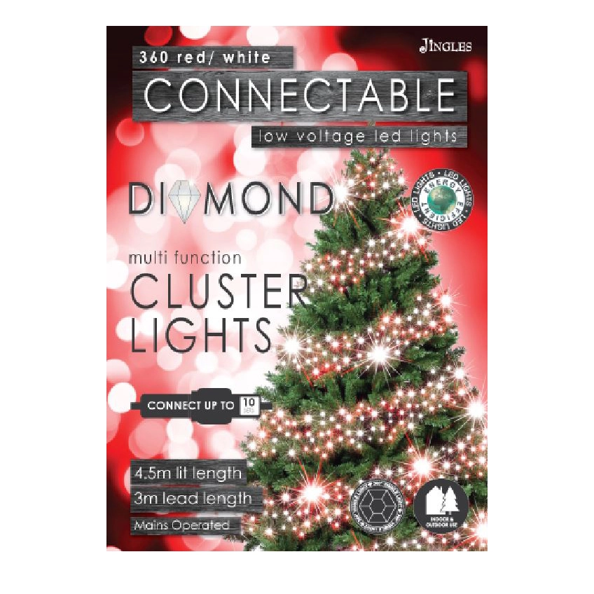 These energy-efficient, connectable lights feature 360 red/white LED bulbs on a flexible, durable green cable. The set spans a lit length of 4.5 meters with a 3-meter lead wire, making it ideal for indoor and outdoor use. Equipped with an IP44-rated adaptor and 8-function memory settings, this lighting system includes an 8+16-hour timer for hassle-free operation. Connect up to 10 sets for a captivating, seamless display that adds a magical touch to any holiday setup.