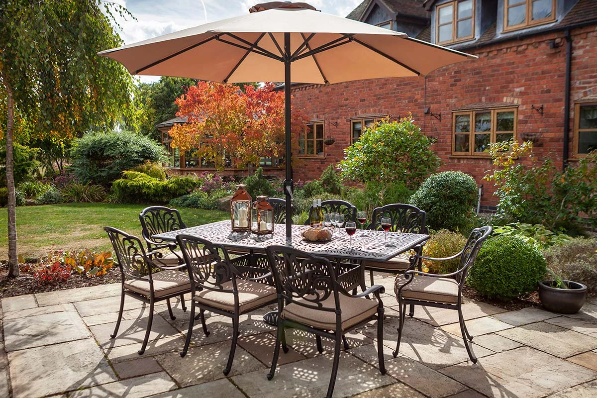 The Amalfi 8-seat rectangular dining set blends classic elegance with durable, all-weather design, perfect for outdoor entertaining. Complete with UPF50+ 3m round parasol and Weatherready® cushions, this low-maintenance set ensures comfort and style for family gatherings year-round.