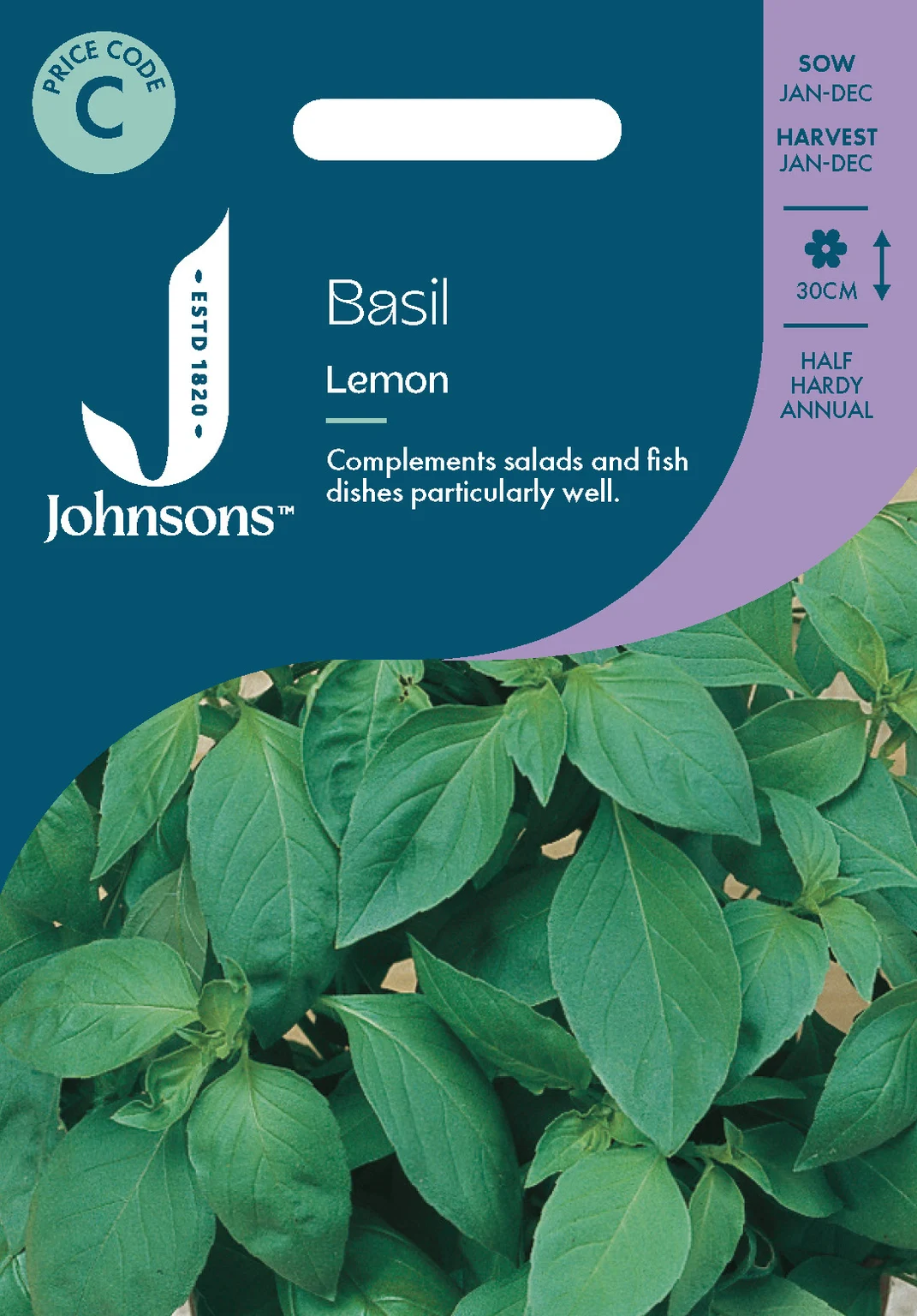 Johnsons Seeds Basil Lemon delivers a fresh citrus twist on classic basil, producing aromatic leaves with a zesty lemon tang ideal for salads, fish, and sauces. Easy to grow indoors or outdoors, this fast-germinating herb offers reliable harvests across a long season for home cooks and gardeners alike.