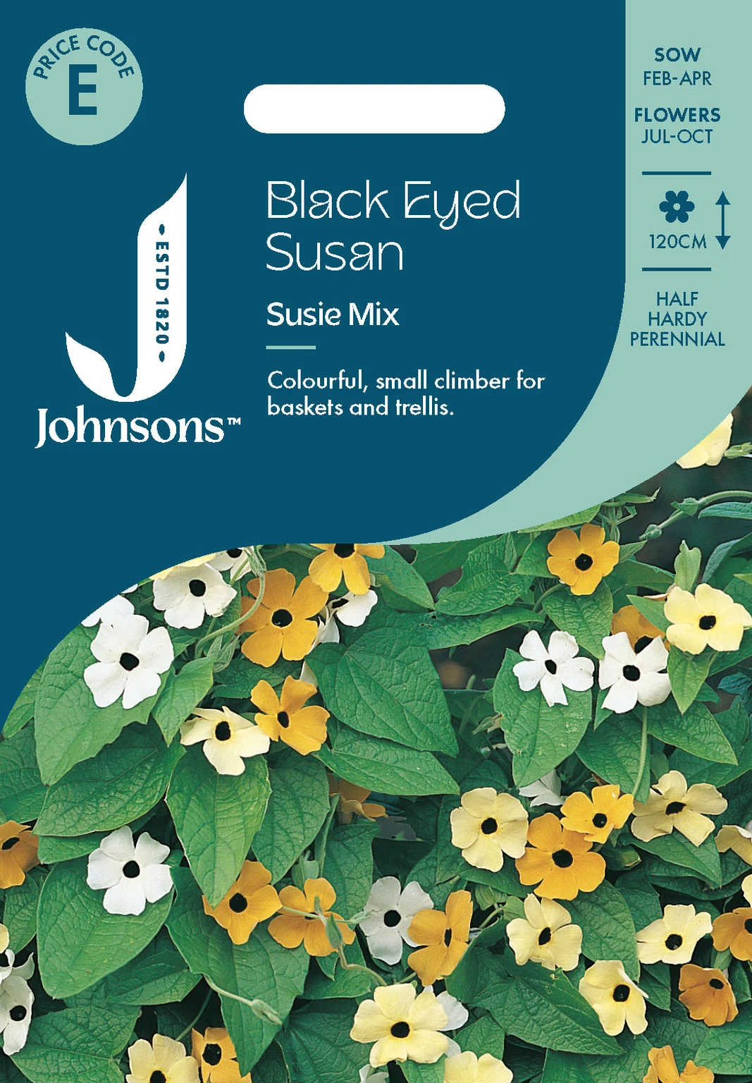 Johnsons Seeds offers a colourful, compact climber ideal for baskets, pots, and trellis, producing long-lasting blooms from summer through autumn. Easy to grow from indoor sowing, this half-hardy perennial thrives in containers, delivering vibrant vertical interest in small spaces.