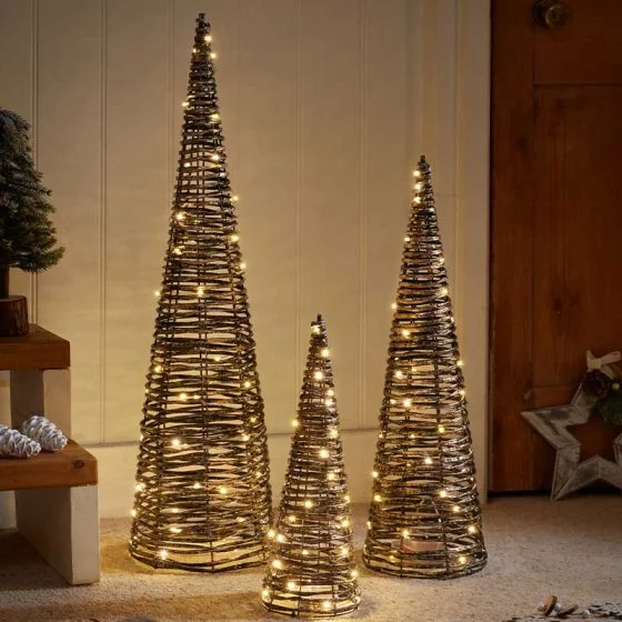 Create a striking festive display with the BlackGold braid TreeBelisks, a set of three LED lit decorations in warm white glow. Perfect for both indoor and outdoor settings, these handcrafted pieces add height, texture, and timeless style to Christmas décor. Available in regular, large, and jumbo sizes, they work beautifully clustered together or placed individually to enhance your seasonal atmosphere.