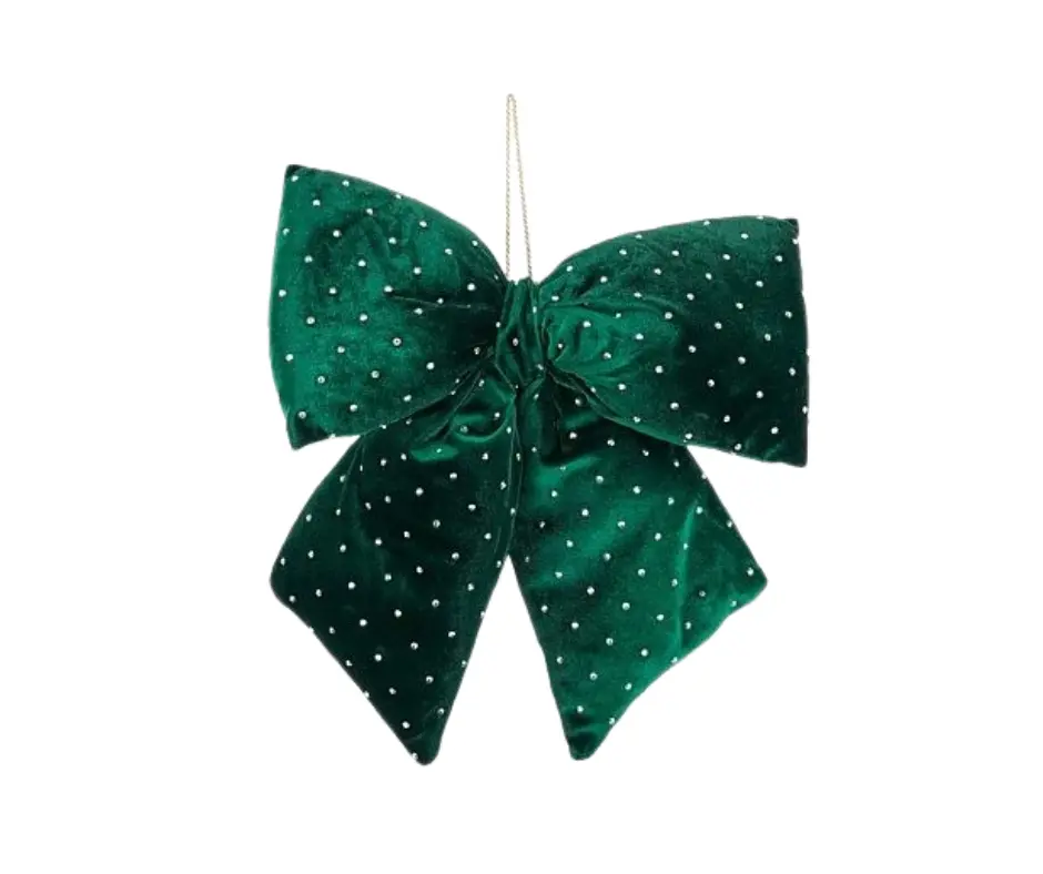 Luxurious Bow Green crafted from soft polyester velvet creates a festive focal point with elegant texture. Complete with a handy thread hook, it’s perfect for hanging on doors, mantels, or trees this Christmas season.