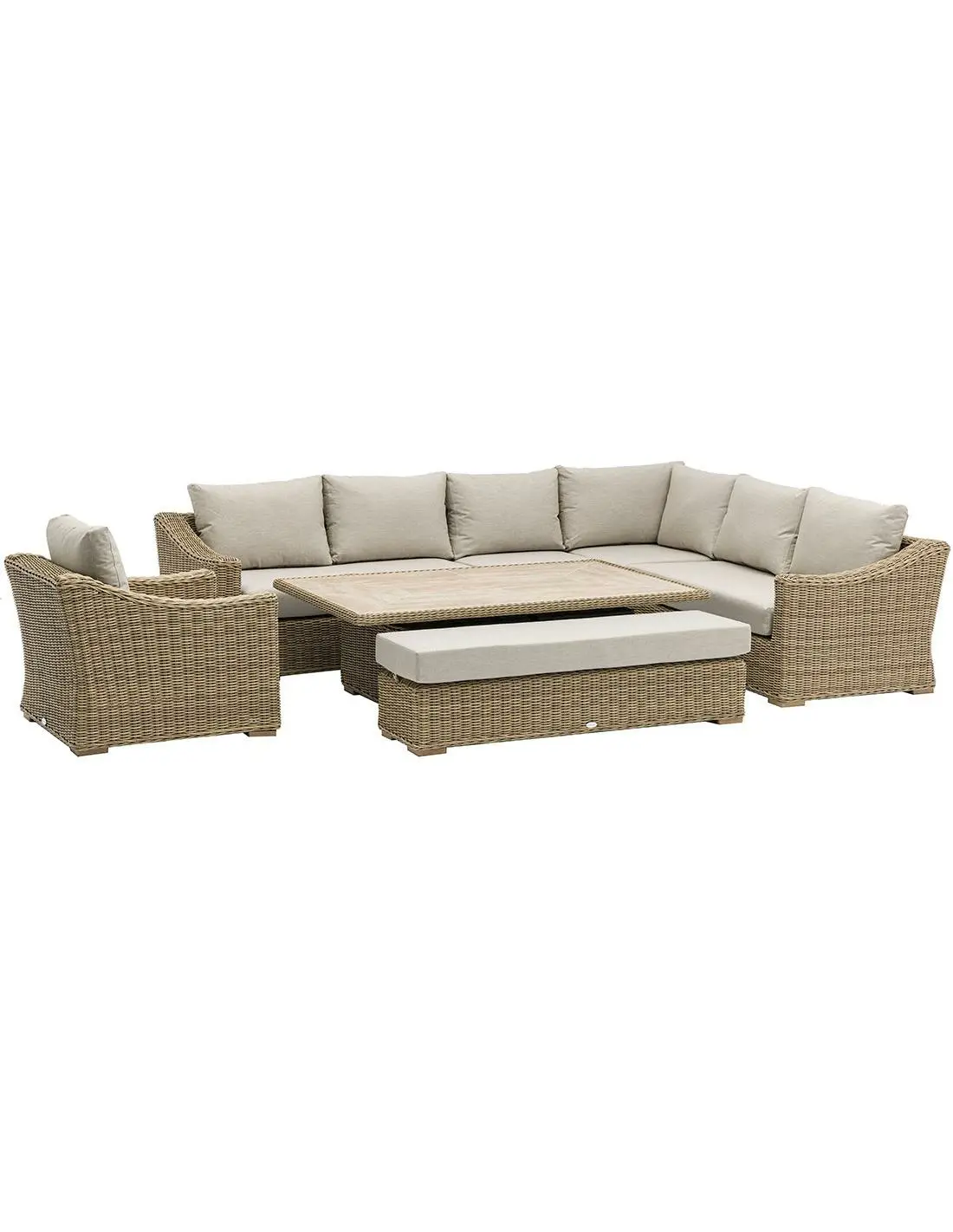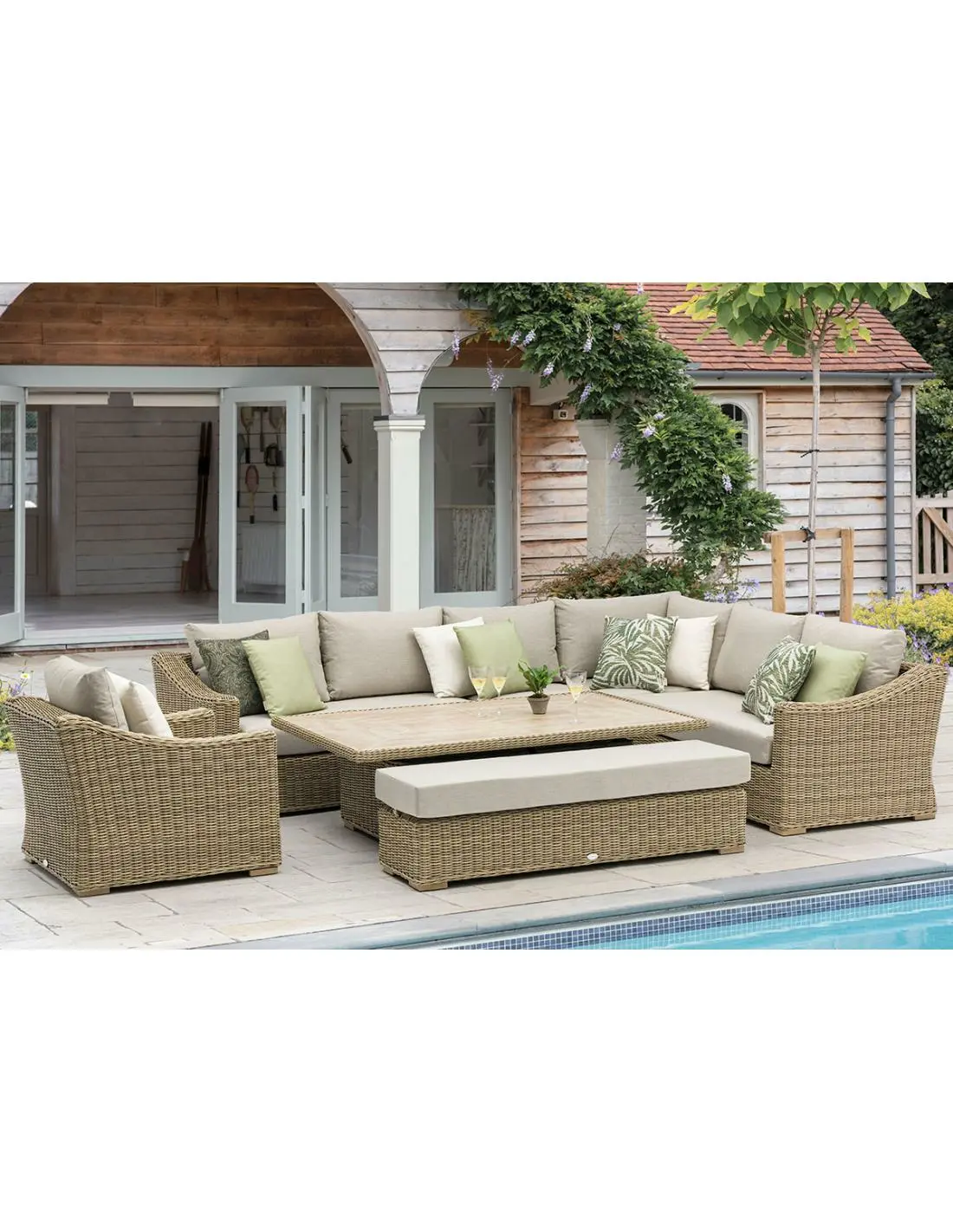 Create the ultimate social hub in your garden with the Bramblecrest Fairford L-Shaped Modular Sofa Set in Walnut Rattan. Designed for stylish outdoor living, this spacious and adaptable set comfortably seats 8 to 10 guests, making it ideal for both relaxed lounging and sophisticated al fresco dining. With a clever modular layout, height-adjustable ceramic-top table, and eco-friendly season-proof cushions, it blends luxury, functionality, and durability—perfect for transforming larger patios into elegant, all-season entertaining spaces.