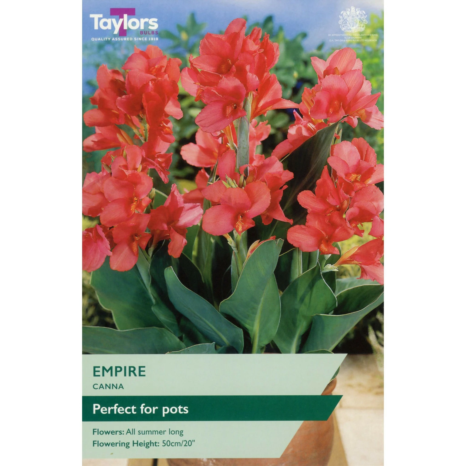 Canna Empire thrives in small spaces, delivering vibrant tropical blooms all summer long. Perfect for pots and containers, this compact canna grows to 50cm, making it a standout choice for brightening patios and borders with sustained summer colour.