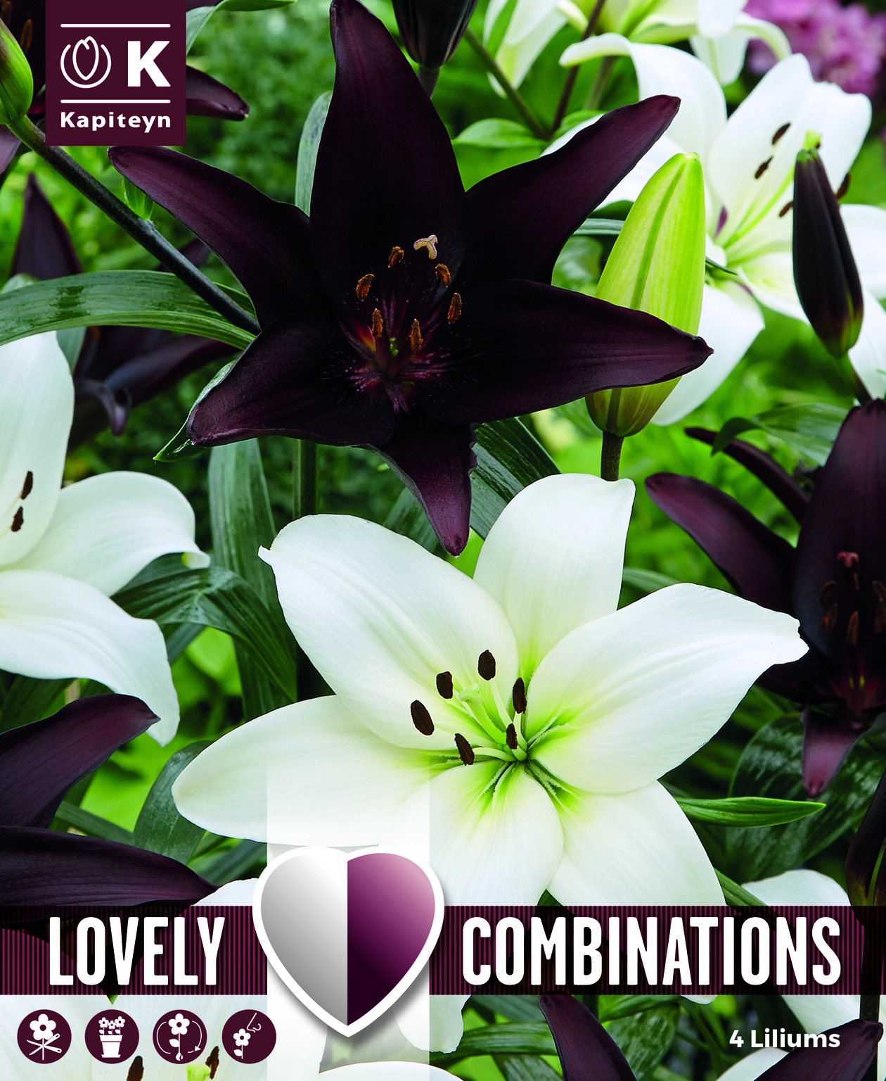 Add a striking contrast to your summer garden with Combi Lilium Asiatic White & Black, a duo of elegant summer-flowering bulbs. These bulbs thrive in sunny garden spots, producing vibrant blooms in June and July. Easy to plant once the frost risk has passed, they require a planting depth of 15 cm (6") and a spacing of 20 cm (8") for optimal growth. Reaching a height of 80 cm (32"), they are ideal for creating dramatic displays. Store the bulbs in a cool, dry place until planting to ensure top-quality results. Full planting instructions are available on the package for added guidance.
