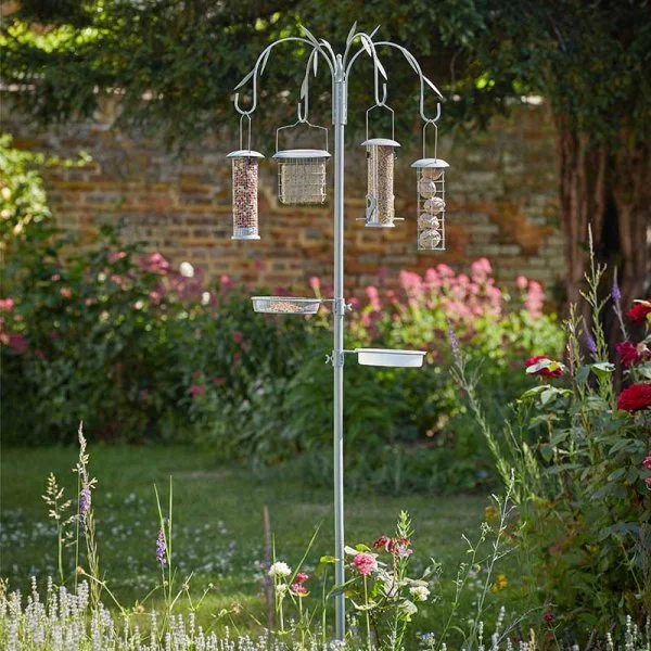 - Includes metal feeders for seeds, peanuts, suet balls and suet cakes