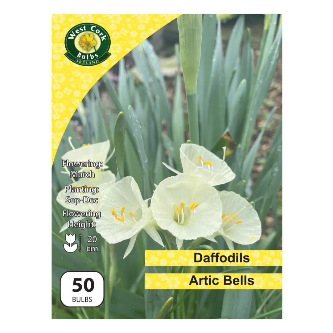 Enjoy a stunning display of delicate white blooms with the Daffodil Species 'Arctic Bells' 50 Bulbs Pack from West Cork Bulbs. These charming early-flowering daffodils add a fresh, crisp touch to any garden or container, thriving in a variety of soil types. Perfect for naturalising in lawns or woodland borders, 'Arctic Bells' offer reliable spring cheer year after year. Ideal for gardeners seeking hardy, low-maintenance bulbs that brighten up autumn planting schemes.