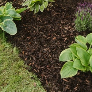 For best results lay a perforated plastic or fabric membrane under the bark. Cut an x-shaped hole in the membrane and place shrubs and plants into the planting hole under the membrane. Spread the bark chips back under the plant canopy to hide the membrane.