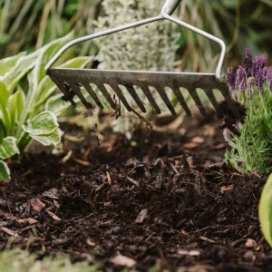 Prepare the area by removing all weeds and debris. Spread a layer of bark 2.5cm to 5cm deep evenly over the bed or border.