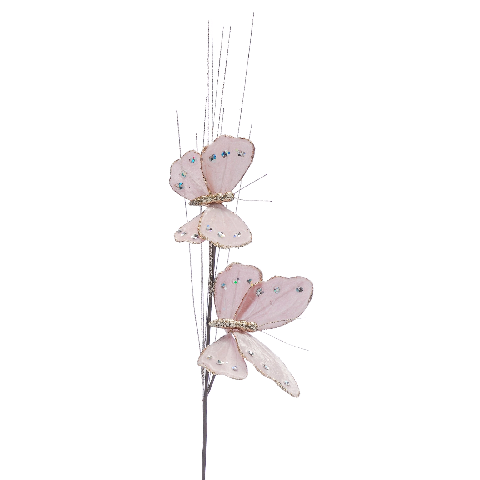 Soft blush butterfly wings and sparkling festive accents make this Double Pink Butterfly Stem (62cm) a delicate showpiece for luxury Christmas décor, perfect for elegant trees, wreaths, and floral displays. Crafted with shimmer detail and wired design for easy styling, it adds gentle movement, depth, and charm to sophisticated seasonal themes.