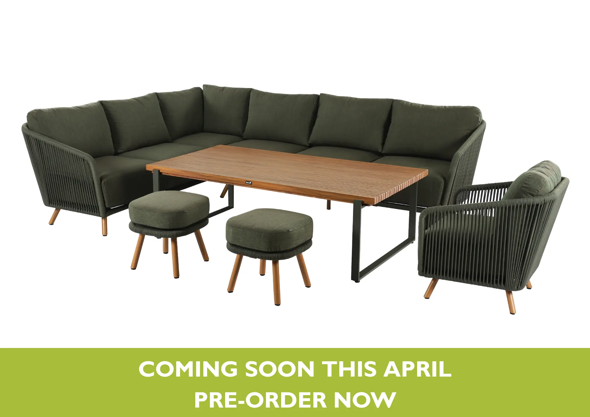 Blending refined outdoor luxury with everyday comfort, the Eden Rectangular Casual Dining Set pairs contemporary all-weather rope seating with calming natural tones for a relaxed yet premium garden setting. Designed for BBQs, casual dining and evening drinks, it features rust-free aluminium frames, ultra-plush Weatherready® cushions, and durable Folie wood-look tabletops that deliver the beauty of natural timber without fading, staining, or seasonal maintenance making Eden a stylish, low-effort choice for year-round outdoor living.