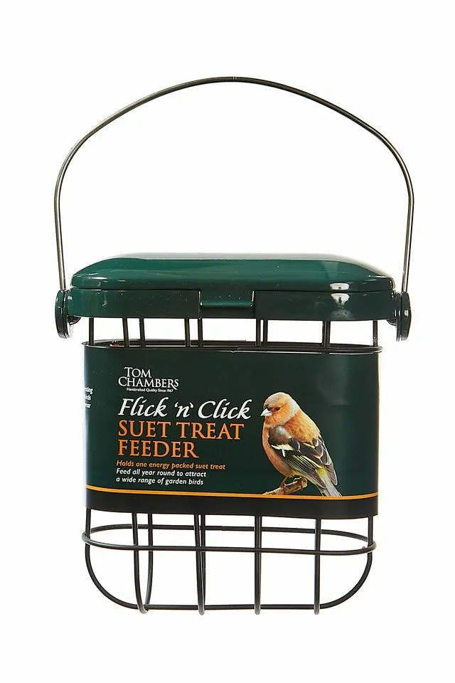 The Tom Chambers Flick ‘n’ Click Suet Treat Feeder offers a sturdy, weather-ready design that keeps suet treats secure while giving garden birds quick, comfortable access to high-energy food. Its hinged flick-top lid makes refilling effortless, helping you maintain a clean, inviting feeding spot that encourages regular wild bird visits.