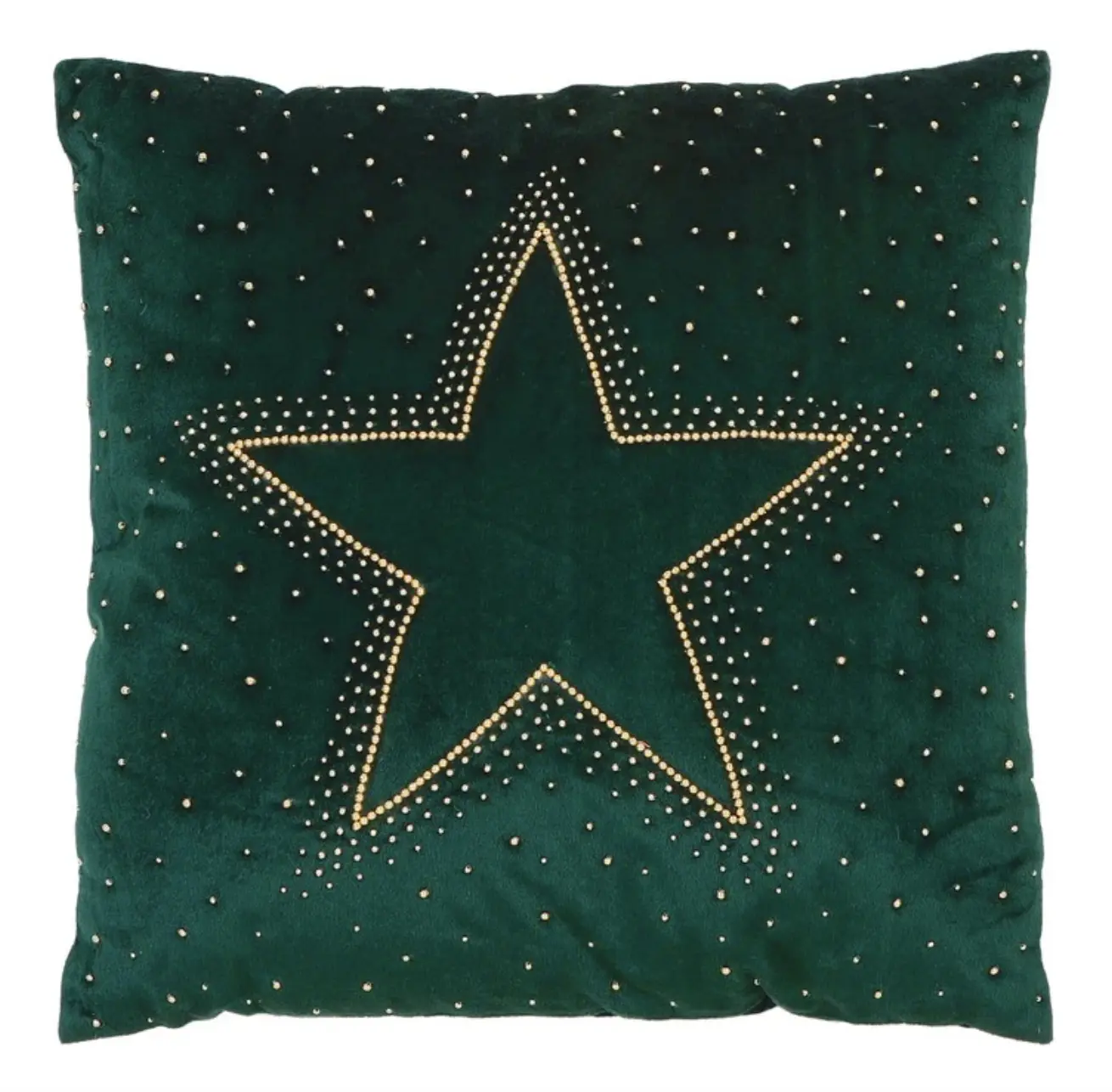 - Green Velvet Star Cushion: L 45cm x W 45cm