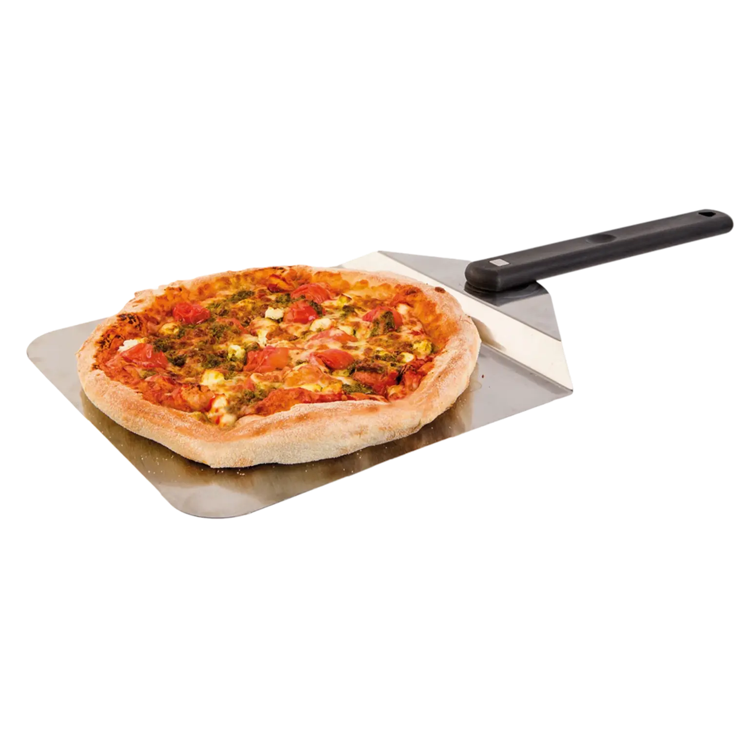Grill Guru Pizza Peel Steel Foldable is a stainless steel BBQ pizza peel designed for safe, effortless pizza transfer on pizza stones and grills. Foldable heat-resistant handle ensures compact storage and fingertip safety while sliding and lifting pizzas with precision.