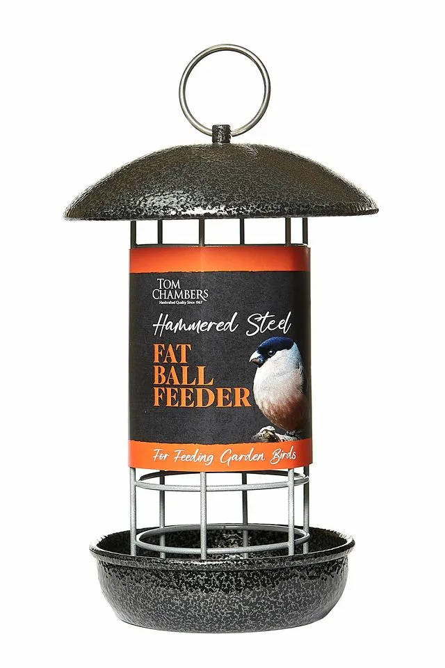 A rugged hammered-steel fat ball feeder that offers reliable, all-weather performance while giving garden birds a comfortable, open perch for easy feeding. The domed roof shields food from rain, helping keep fat balls dry, accessible, and appealing to a wide range of wild birds.