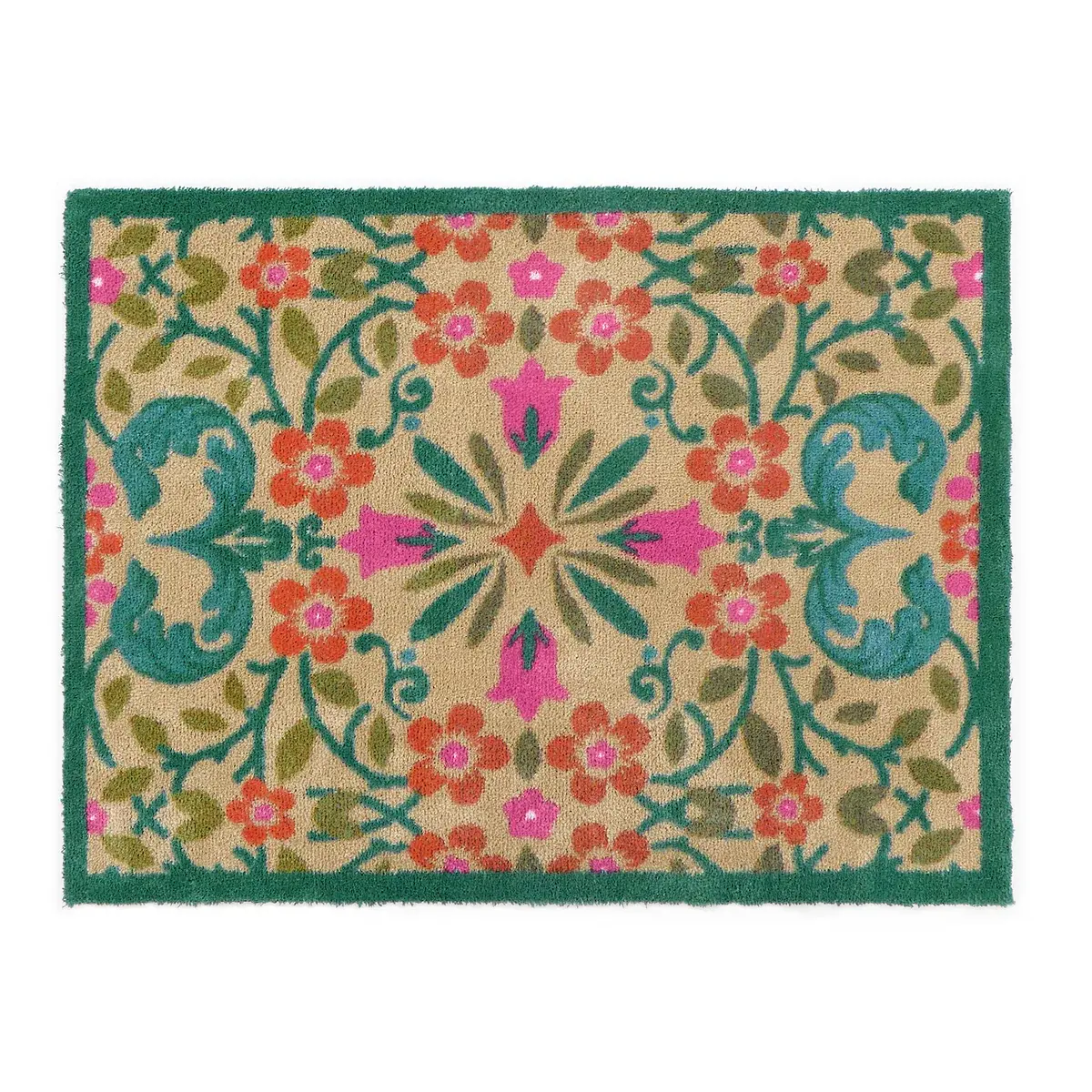 Add charm and practicality to your entryway with the Folk Floral Hug Rug from our Nature collection. Designed to trap up to 95% of dirt, dust, and mud, this eco-friendly mat features a vibrant floral pattern in warm orange, red, green, and blue tones, set against a soft beige background with a contrasting blue border. Made in the UK using up to 90% recycled materials, it’s ultra-absorbent, machine washable at 30°C, and finished with a non-slip rubber backing for added safety and stability.