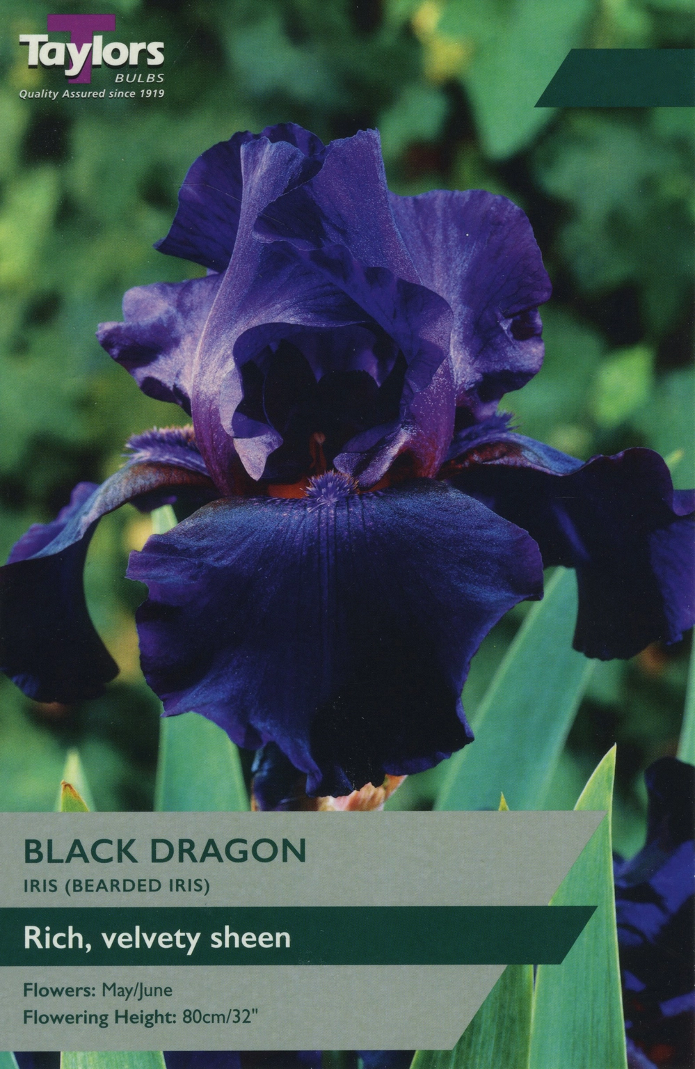 The Iris 'Black Dragon' is a striking summer bulb that produces deep purple, almost black flowers with a luxurious velvety sheen, adding drama and elegance to any garden. This Iris Germanica variety thrives in rich, well-drained soil and full sun, making it ideal for borders or as a statement plant. Its long-lived nature ensures year-after-year beauty, bringing a timeless touch to your outdoor spaces.