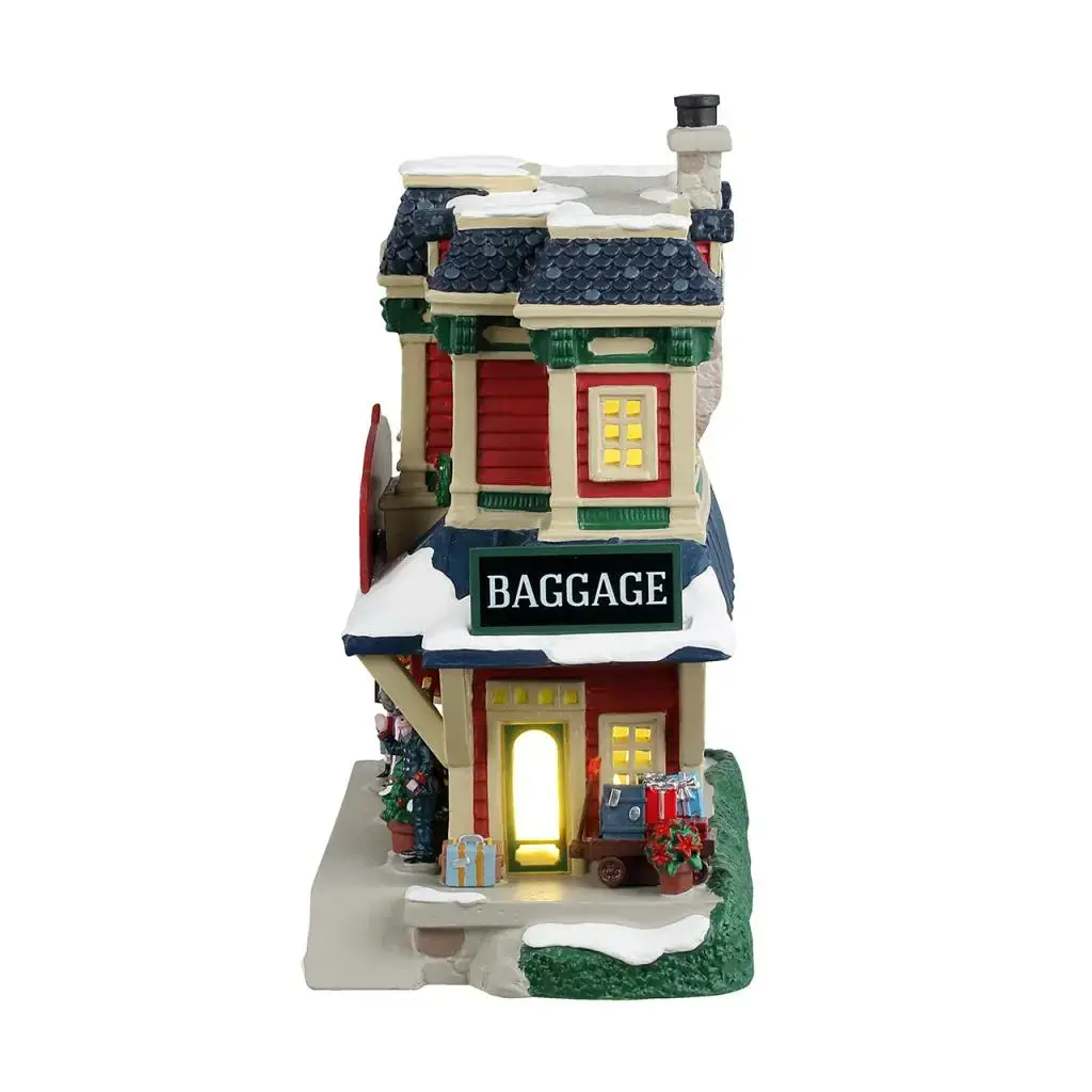 Discover the charm of Holly Jolly Junction, a porcelain lighted building that captures the spirit of the holiday season with intricate festive details and glowing LED lights. This quaint train station scene showcases twinkling decorations and colourful gift-filled suitcases, inviting endless stories of wintertime journeys in the heart of Caddington Village. Compact yet richly detailed, it makes a perfect centerpiece for any holiday village collection.