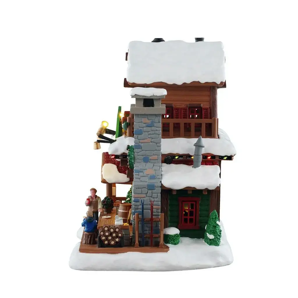 Cozy and charming, Pine Grove Pizza by LEMAX brings the feel of Vail Village to your holiday display with rustic wood and stone architecture, warm interior lighting, and miniature details that hint at mouth-watering pizzas, al-dente pastas, and hearty Italian classics. This resin lighted building operates with an easy on/off switch using three AA 1.5V batteries (not included), and can be A/C adapted with a LEMAX Power Adaptor (adaptor sold separately) — a perfect collectible centerpiece for Christmas village scenes and winter décor.