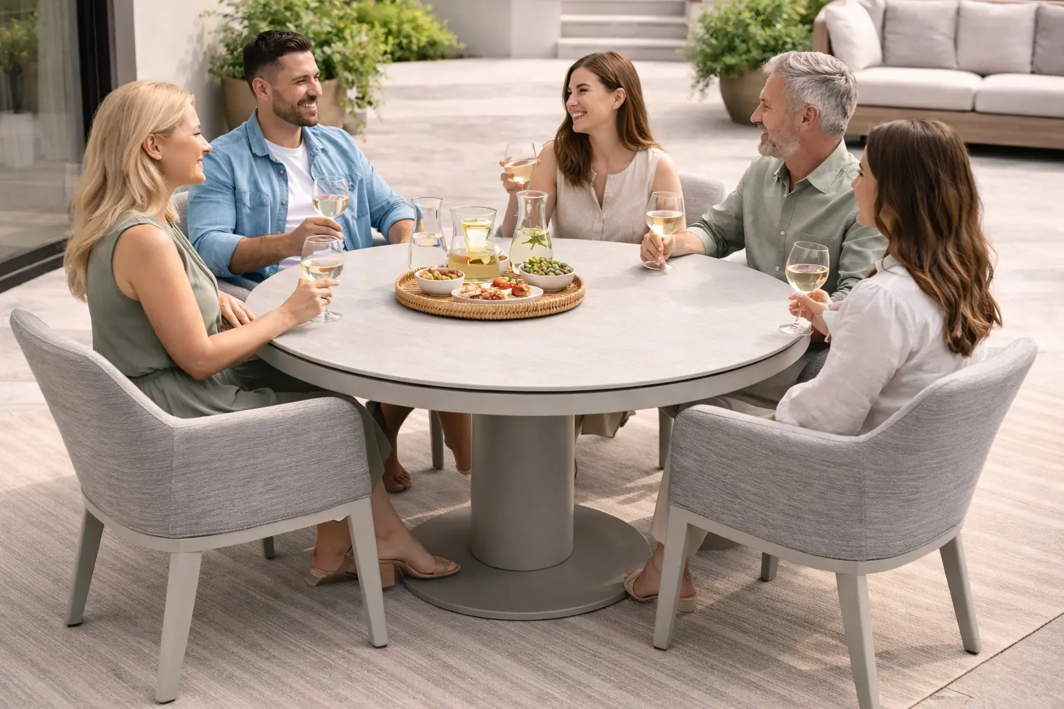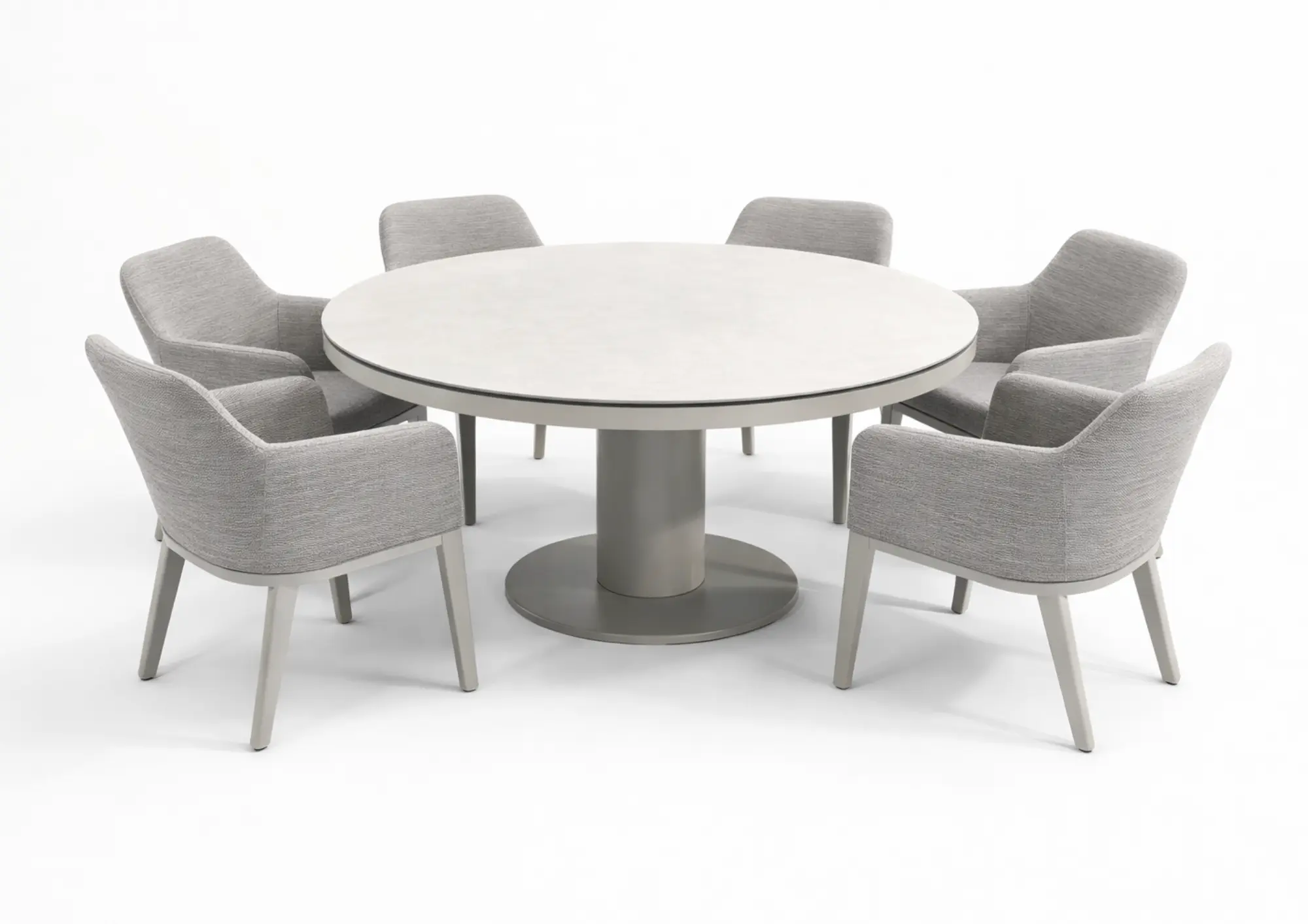 Clean-lined and contemporary, the Life Oslo 6 Seater Dining Set features a 150cm round pedestal table with a sleek ceramic-look top and premium Soltex cushions designed for year-round outdoor use. Built for comfort and durability, this modern garden dining set offers UV resistance, quick-dry materials, and low-maintenance surface. Ideal for stylish patios, decking, and outdoor entertaining spaces.