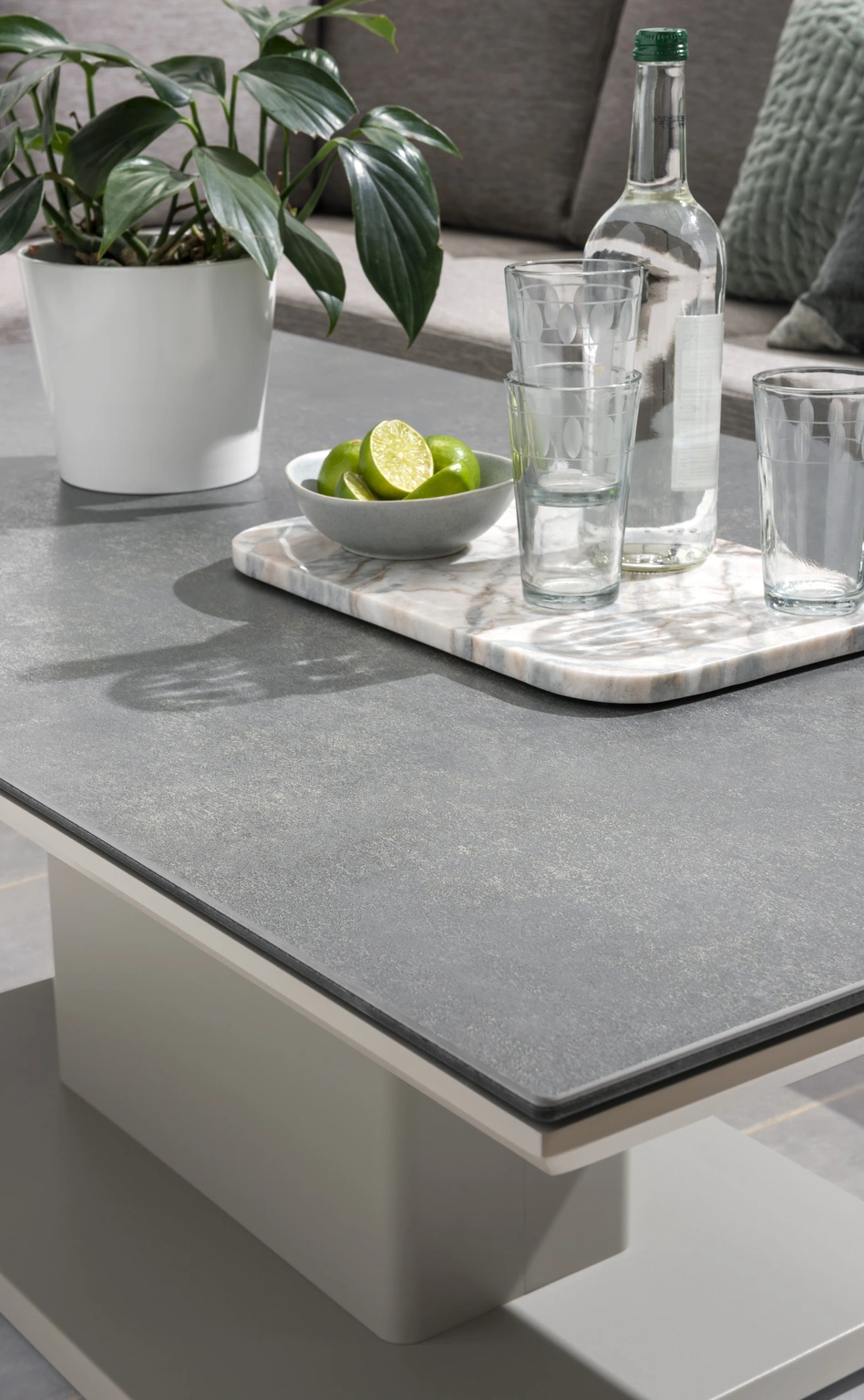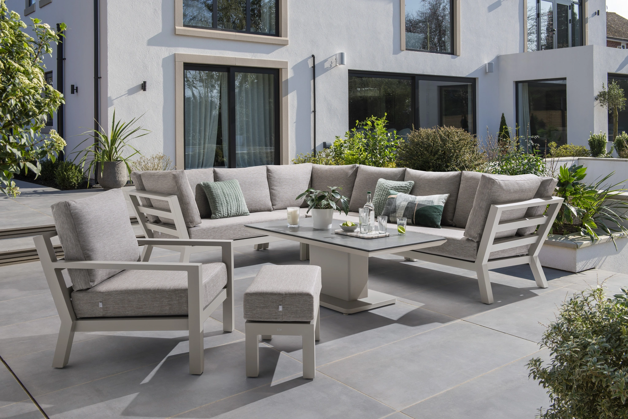 This Life Outdoor Living Timber High-Arm Soltex Corner Sofa Set - Beige is stylish and robust. Although named ‘Timber’, this set is actually made from aluminium and consists of a corner seating unit and a high table with a Ceramic top. It is an exceptional set for creating a relaxed setting for socialising and chilling out.