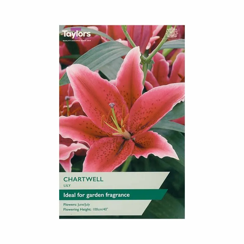 Lily ‘Chartwell’ thrives in sunny or lightly shaded, well-drained soil, showcasing large, fragrant pink blooms with delicate speckling and elegant recurved petals. Blooming mid-summer on tall 1m stems, it’s perfect for vibrant garden borders and stunning cut flower displays.
