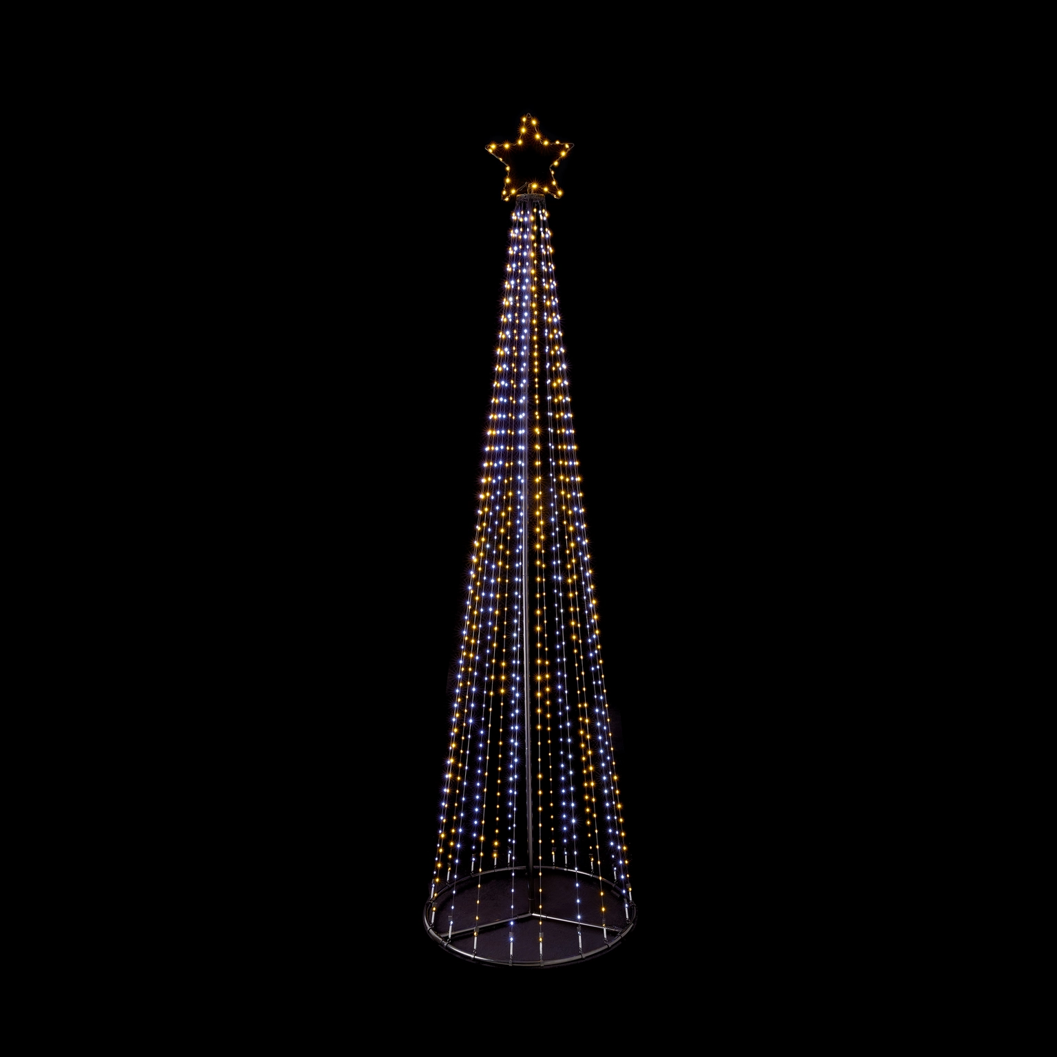Light up your festive season with the 2.5m M-A FlexiBright Pyramid Tree, a stunning centrepiece designed to shine indoors or outdoors. Featuring 835 mixed white and warm white LEDs, this pyramid-style tree casts a dazzling glow, finished with a striking star topper for a classic Christmas touch. With its generous 9-metre cable for flexible placement and durable build, it’s the perfect choice for creating a magical winter display that guests and passers-by won’t forget.