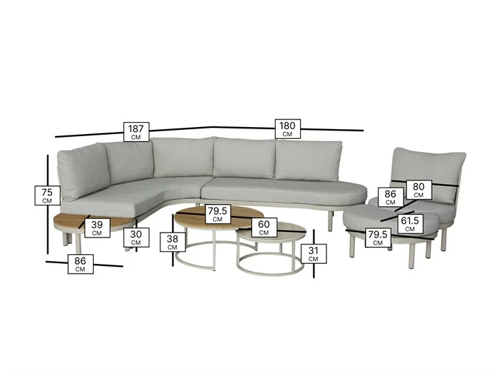 - Left Sofa: H 75 cm x W 114 cm x D187 cm