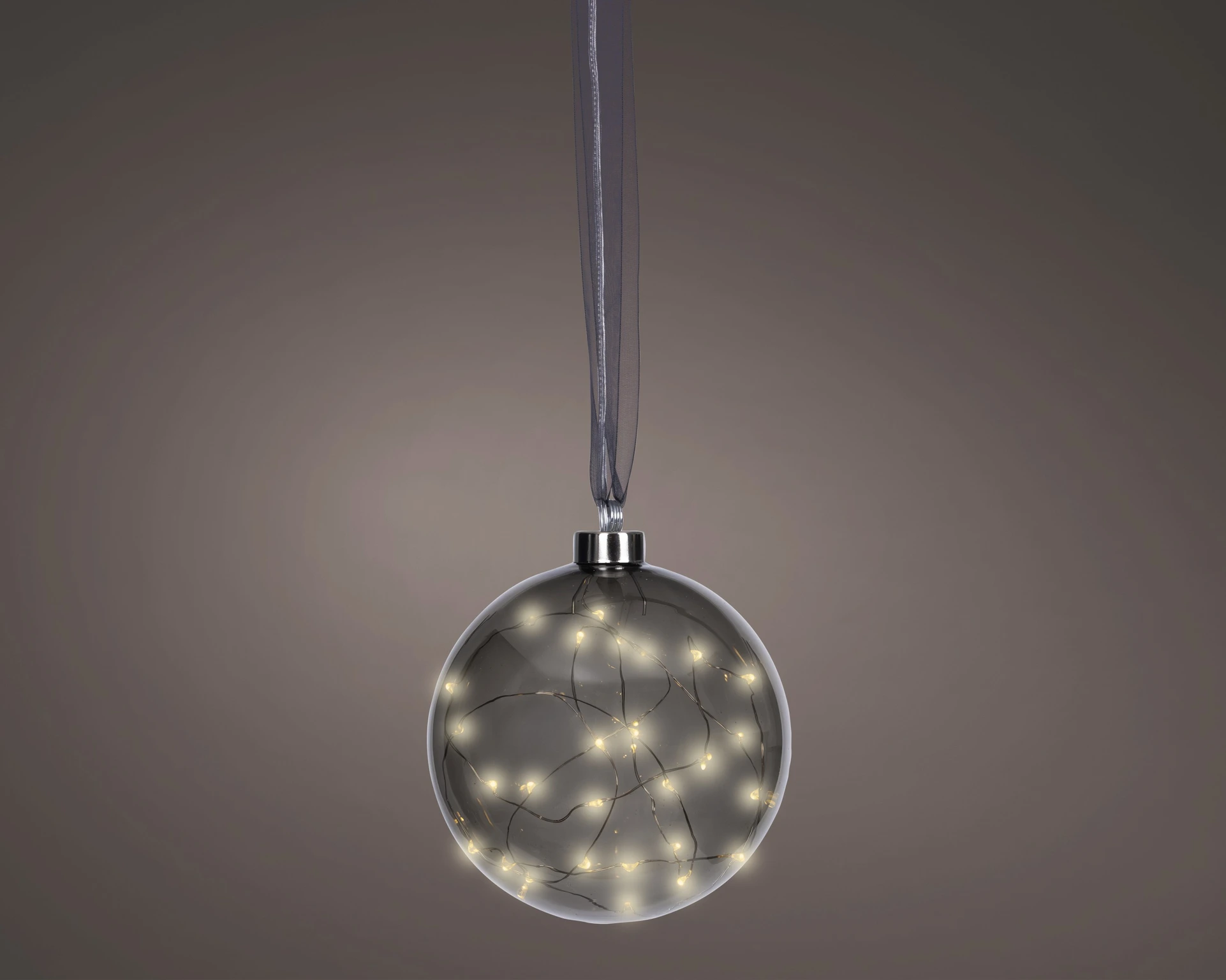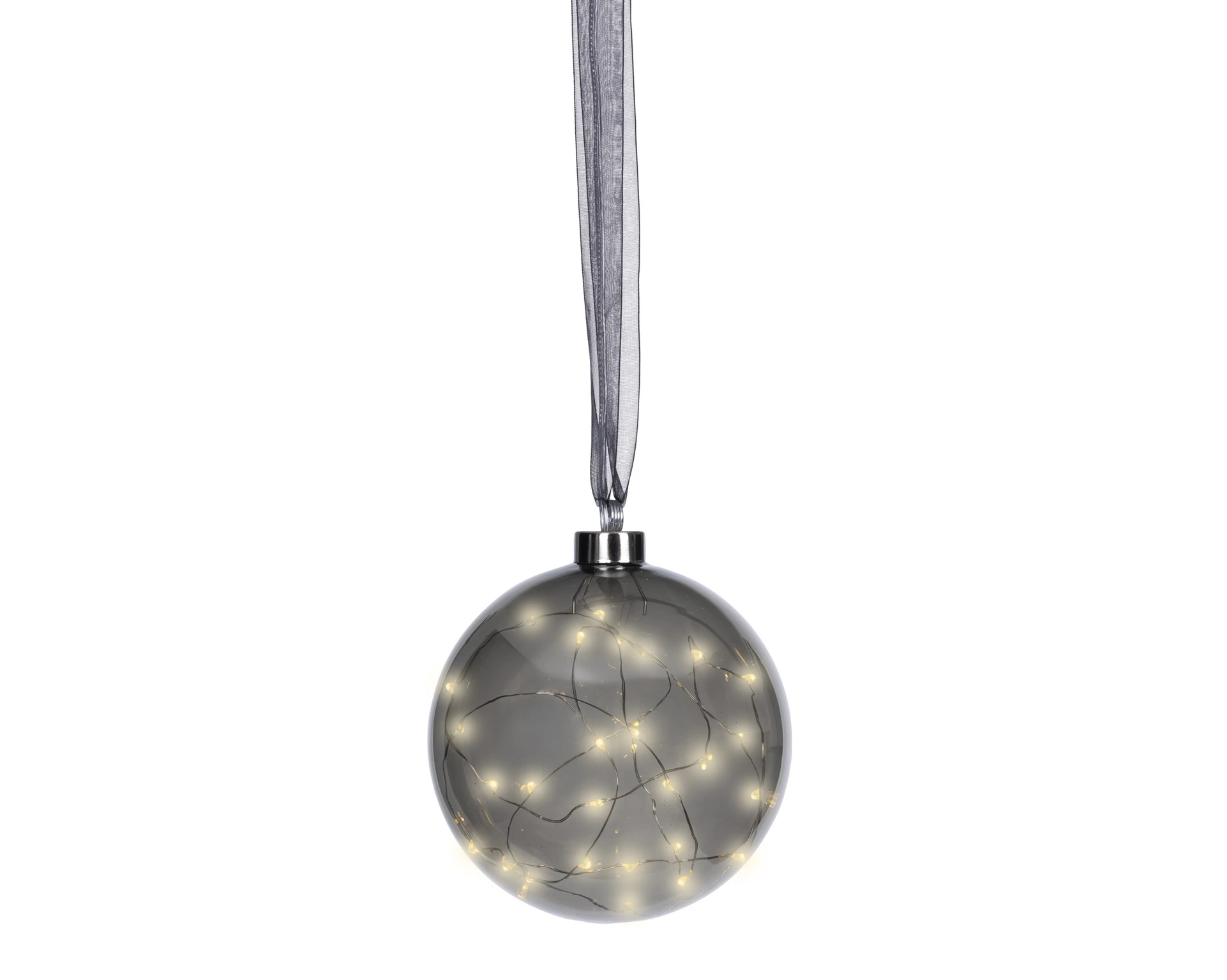 Perfect for cosy indoor corners, this micro LED ball casts a gentle sparkle in warm white, set against a sleek anthracite frame. Measuring 14cm in diameter, the glass ornament creates a soft ambient glow that complements modern and traditional interiors alike. Ideal for adding subtle charm to shelves, mantels, or tabletops, it brings delicate illumination wherever it sits.