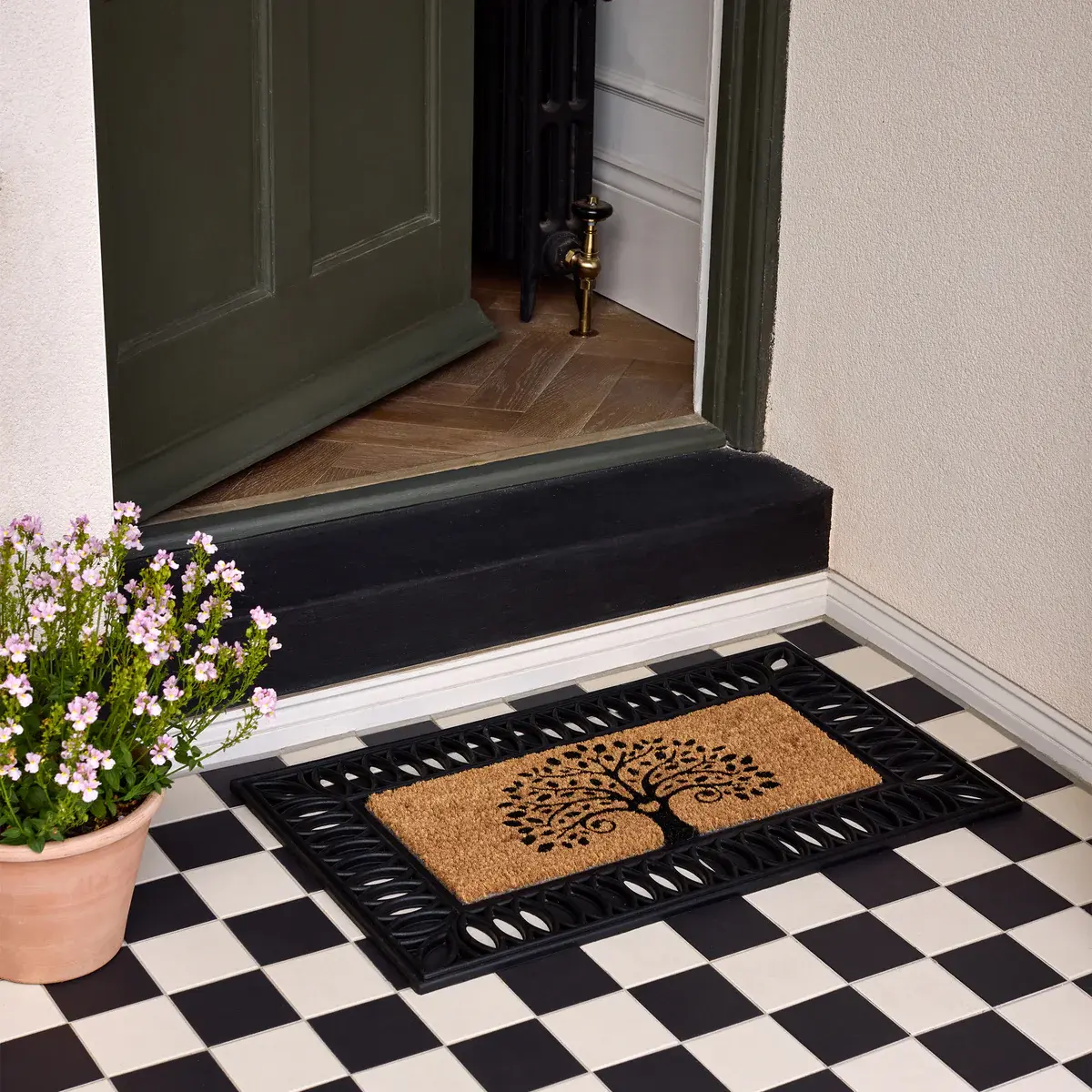 Keep your home clean with the Coir Insert Tree Of Life doormat, crafted from 100% natural coconut husk fibres that trap mud, dirt, and debris effectively. Pair with a durable rubber surround for long-lasting performance and eco-friendly style at your doorstep.