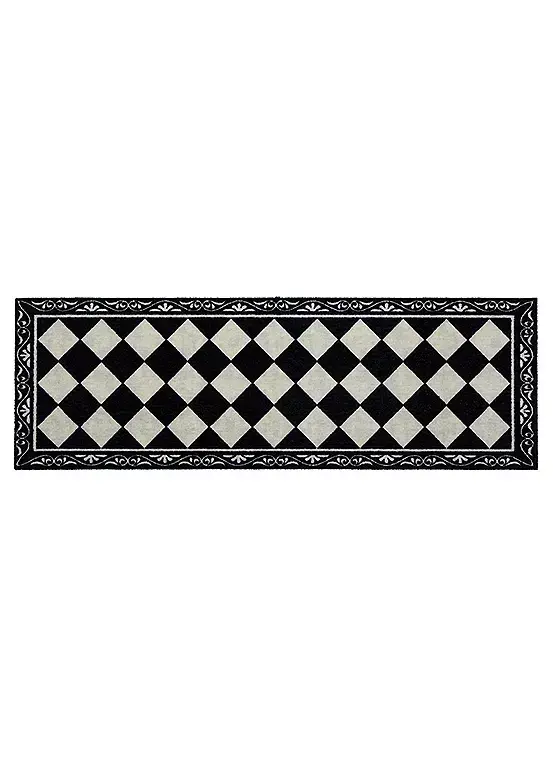 Keep your floors spotless with the My Mat Nylon Indoor Pattern Manor Tile Runner, featuring a striking black-and-white Victorian tile design that combines elegance with functionality. Crafted from durable, stain-resistant nylon, this washable, non-slip mat traps dirt and mud effortlessly while being safe for underfloor heating and easy to maintain.