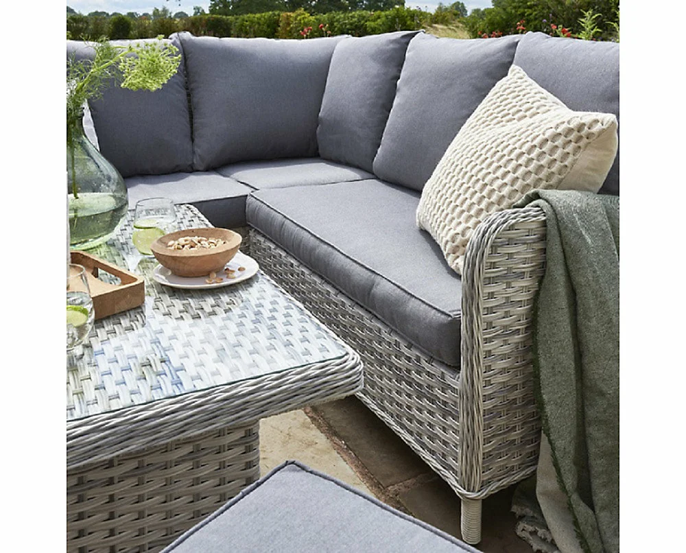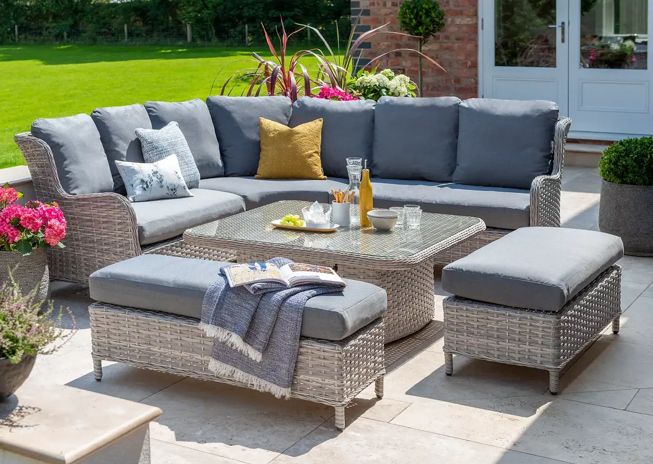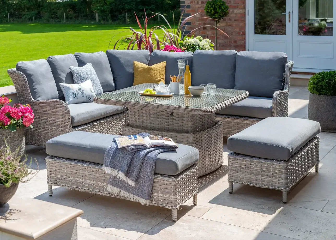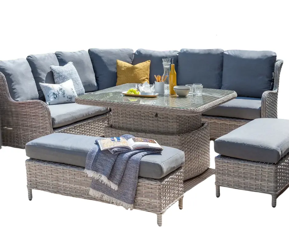 The Nevada Deluxe Large Corner Set offers a perfect balance of style, comfort and durability for outdoor living. Its deep-fill cushions provide exceptional support while weather-resistant fabrics ensure the set withstands summer days and occasional showers. Designed to seat up to nine people, the spacious layout is ideal for family gatherings, and the adjustable table moves effortlessly from casual drinks to formal dining. Built to last and easy to maintain, this set is a smart addition to any garden or patio.