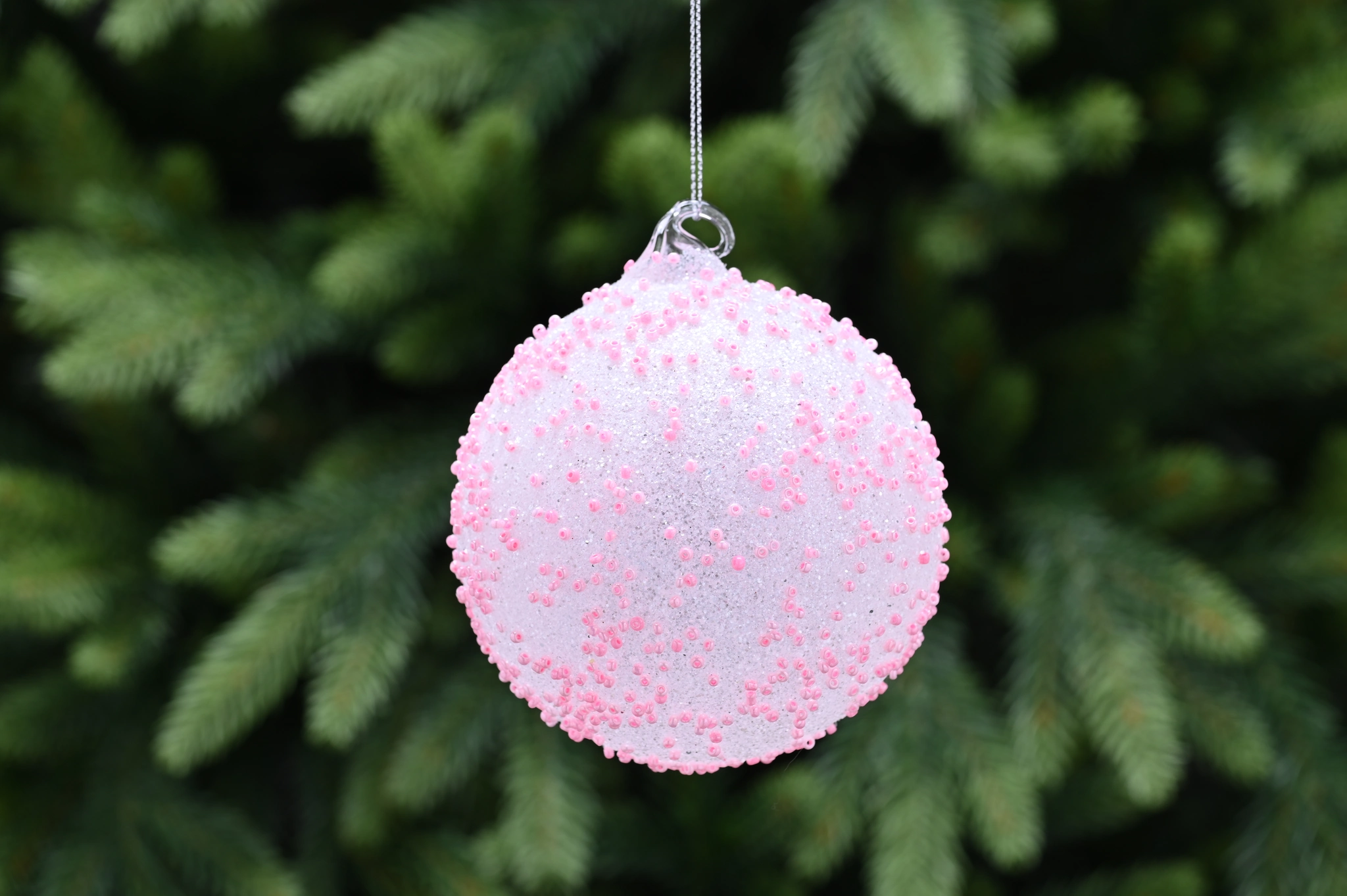 Fairy-lit glamour sparkles across the tree with this Pink Encrusted Glass Ball (10cm), crafted for those who adore luxe Christmas decorations. A shimmering rose-pink finish and delicate beaded detailing make this ornament a festive standout for elegant winter styling and modern holiday décor.