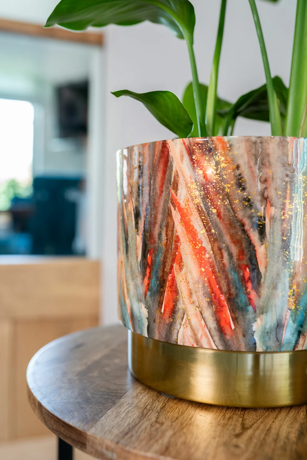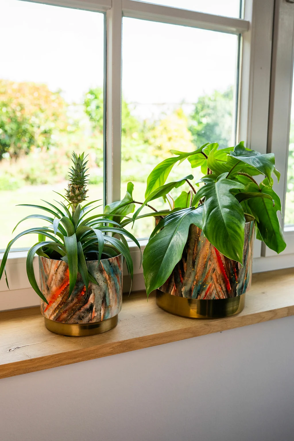 Pot Celia Blush Gold is a striking metal flowerpot that blends elegance with artistic flair. Featuring exclusive artwork by Lammie, this handmade TS Collection piece showcases a unique print that enhances any interior. The cylindrical design offers clean lines, while the expressive drawings add a touch of eccentricity. For durability, the Dutch brand advises using a waterproof inlay to protect the metal