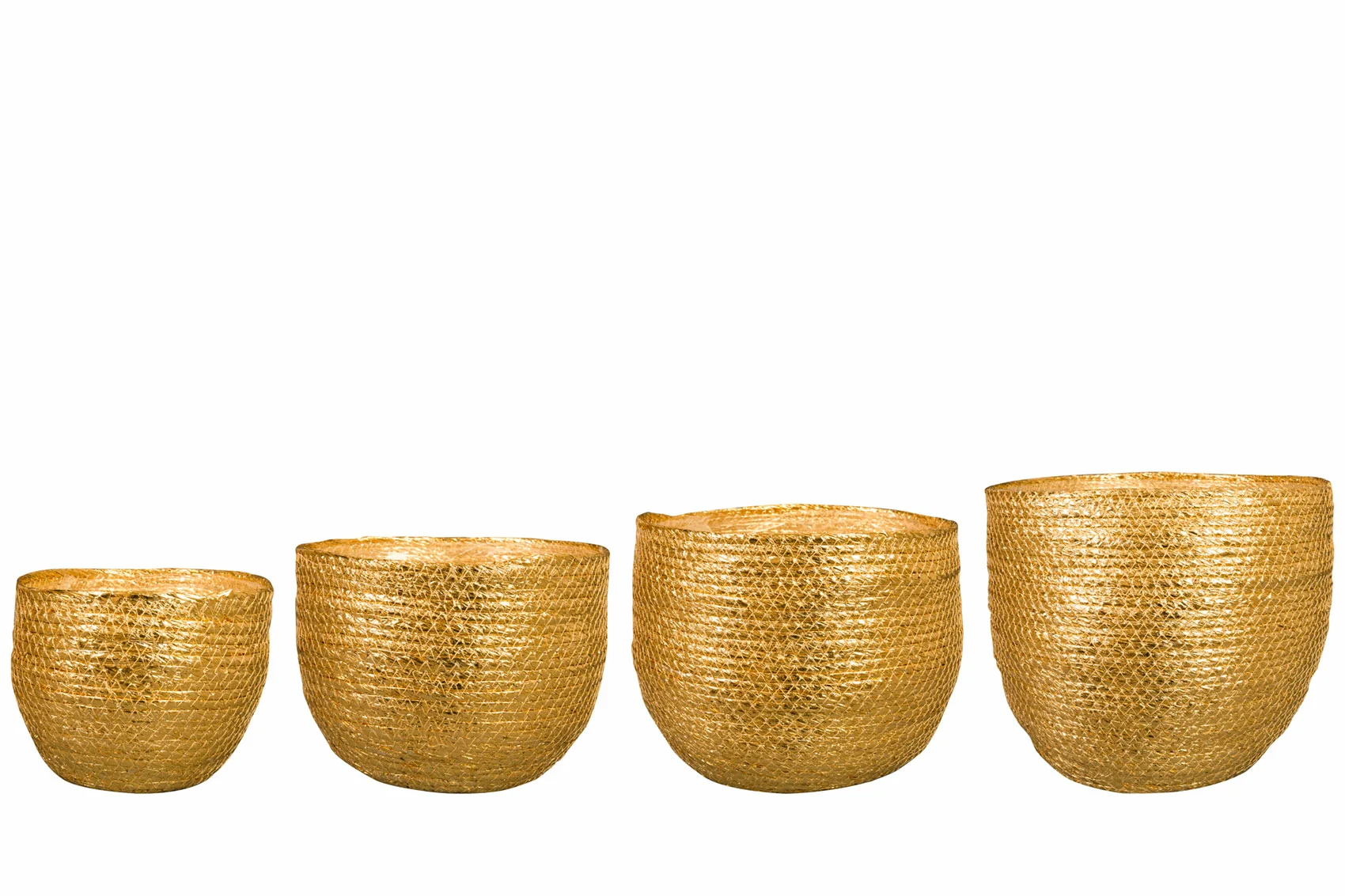 Pot Dorieke Gold is a stunning blend of natural charm and refined luxury, handcrafted from durable seagrass and elegantly wrapped with gold foil for a touch of glamour. Its shimmering accents catch the light beautifully, creating a warm and sophisticated ambiance in any indoor space. Designed with practicality in mind, it features a protective plastic lining, making it ideal for housing plants while maintaining its exquisite aesthetic. Available in 4 sizes, Dorieke Gold effortlessly enhances modern and classic interiors alike