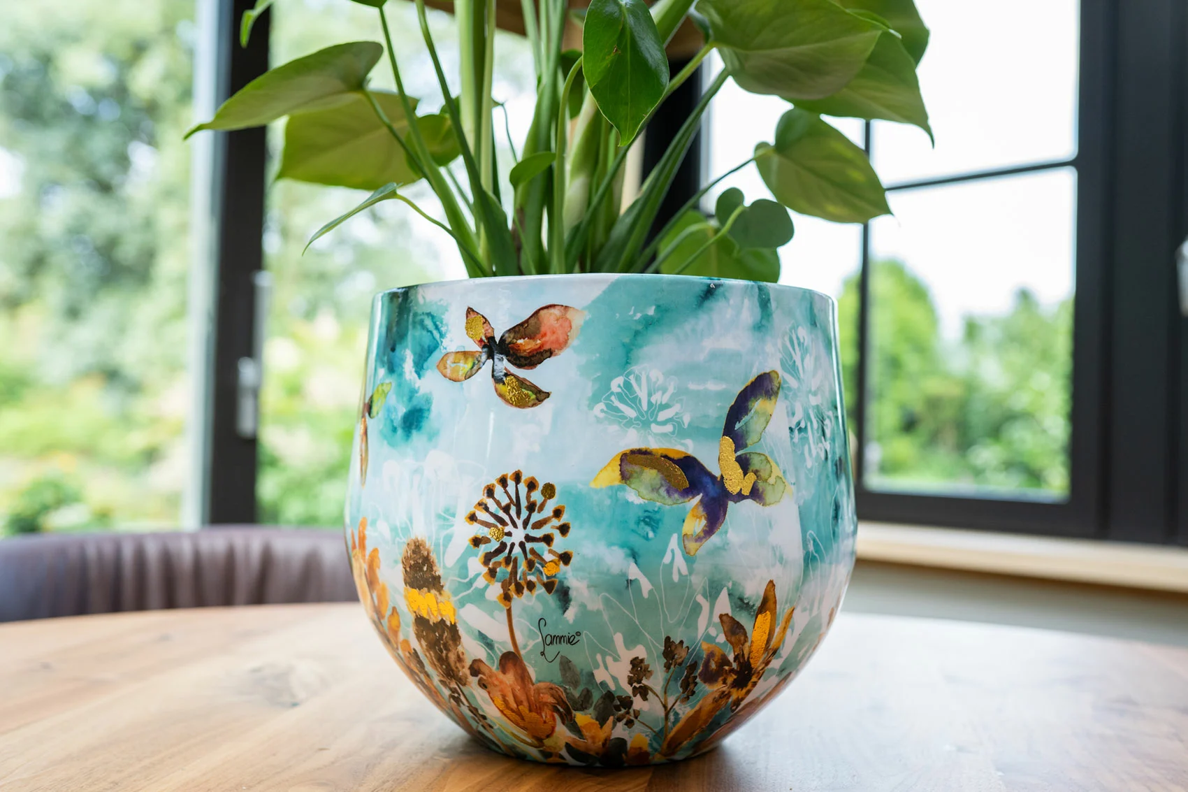 Lammie van Wieringen creates marvelous home items inspired by nature. Become friends with the beautiful design from the Designed by Lammie collection called Fresia Fresh. Trust, freshness, and friendship are at the heart of this design. Like a gentle sea breeze flowing through your home, with the scent of the beach. Butterflies, dandelions, and a calming blue sky. This design is truly timeless in every aspect. There is a wide selection of metal pottery, from towering urns and XL planters to mini pots. For the finishing touch in your interior, TS Collection has added a mango wood tray and bowl, both inlaid with a high-gloss epoxy layer. Wow!