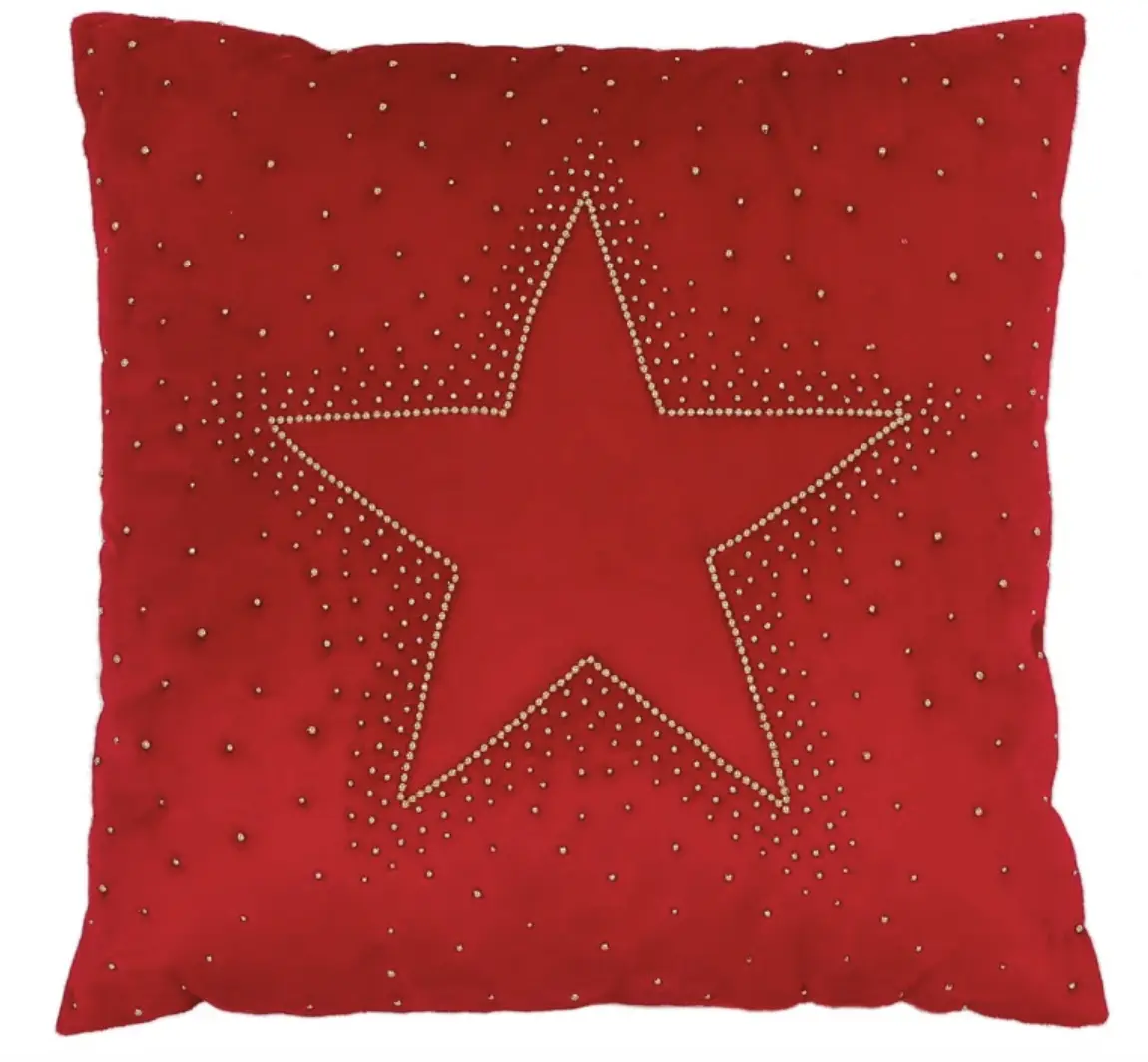 - Red Velvet Star Cushion: L 45cm x W 45cm
