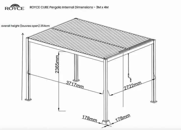 - Overall Height: 250 cm (rising to 254 cm when louvres are fully open)