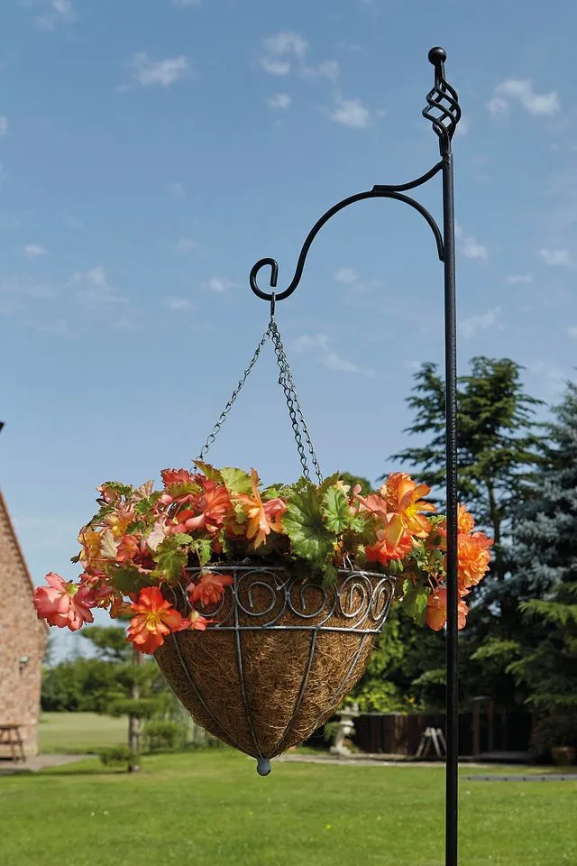 The Tom Chambers Spiral Single Shepherds Crook offers a robust 200cm height with a decorative spiral hanger, perfect for enhancing large containers, garden borders, or outdoor spaces. Its sturdy foot support guarantees stability, making it ideal for hanging baskets, bird feeders, or lanterns with lasting durability.