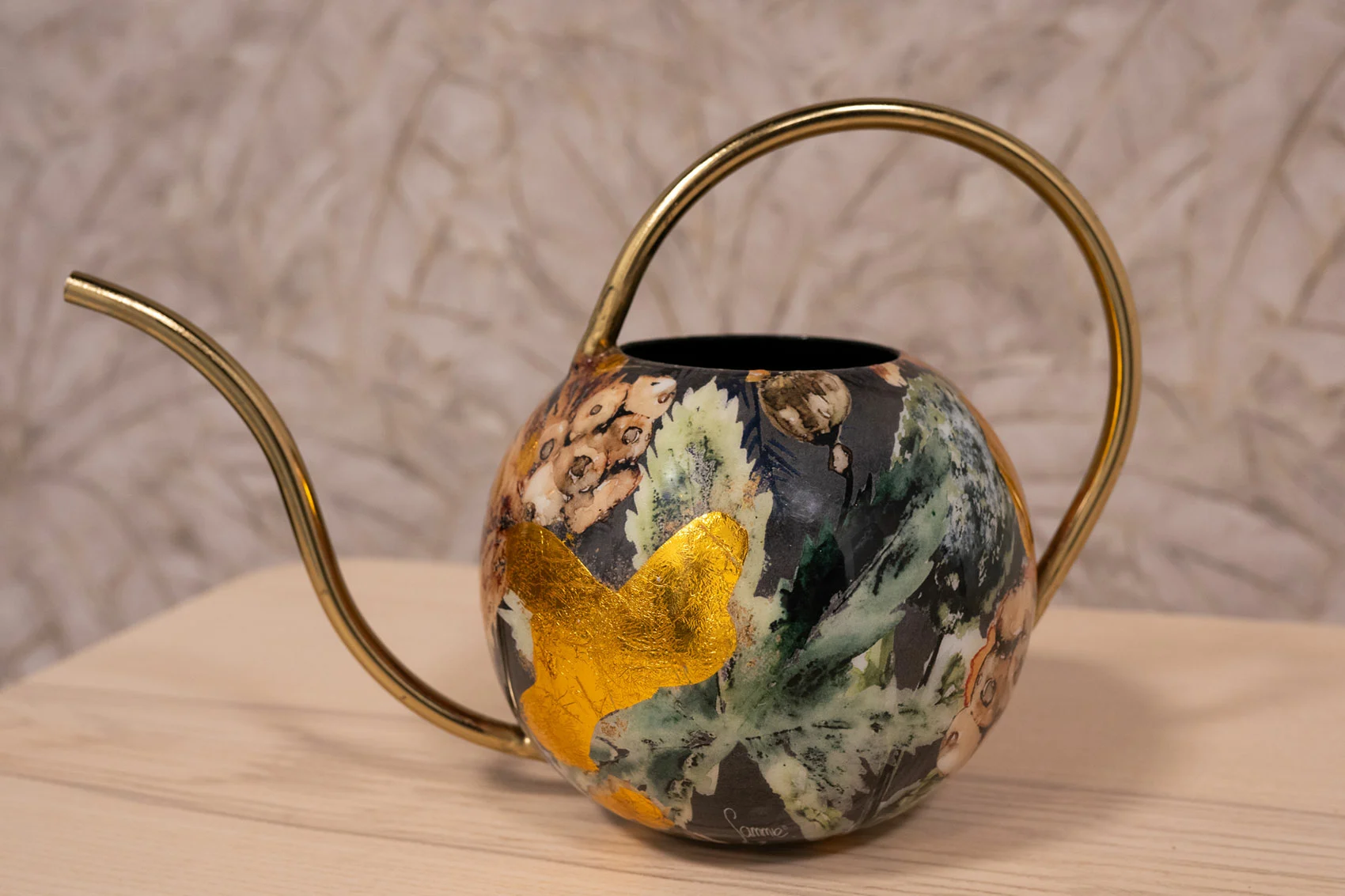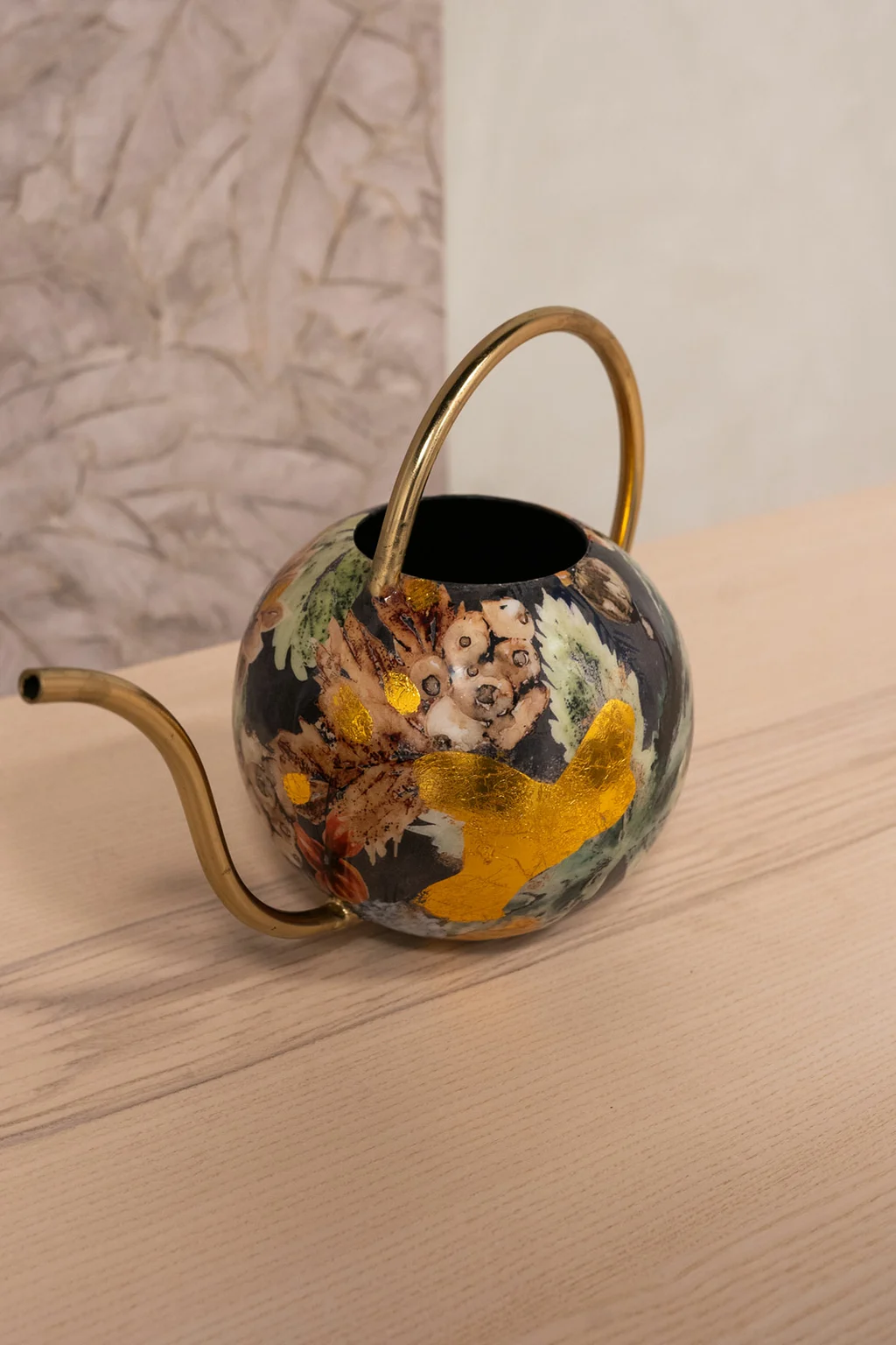 The Berry Blue watering can from Designed by Lammie showcases a rich autumn-inspired print blending dark blues, warm earth tones, and a signature touch of gold. Perfect for stylish watering, this Dutch-designed homeware piece combines artistic berry motifs with functional elegance, enhancing any indoor garden setup.