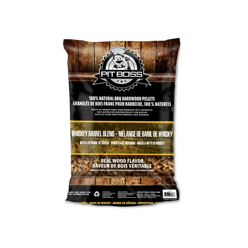 Pit Boss Whiskey Barrell Blend Pellets deliver bold, smoky flavour that infuses every red meat with rich, aromatic notes. Made from 100% oak, these all-natural hardwood pellets burn hotter, cleaner, and longer, giving grill masters unmatched taste and performance without chemicals or artificial additives.