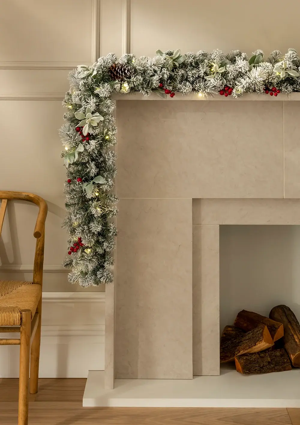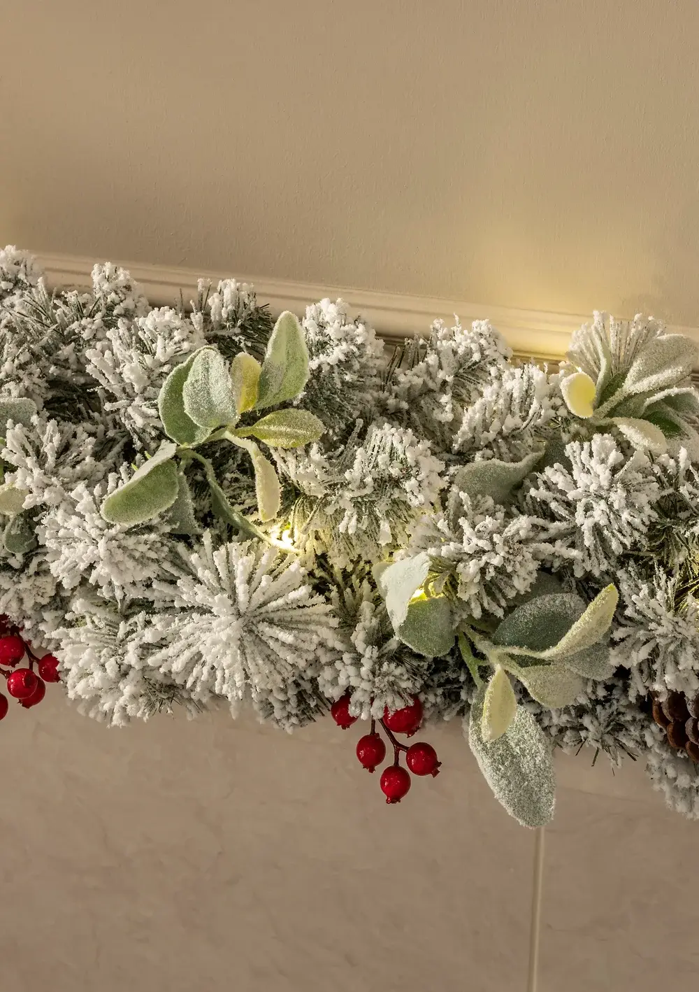 With its lush, lifelike greenery and twinkling lights, this garland is perfect for draping over mantels, staircases, or doorways to create a festive, wintry ambiance without the hassle of real foliage. Measuring six feet in length and ten inches in diameter, it’s pre-lit with energy-efficient LED lights that offer a warm, inviting glow, making it a hassle-free yet stunning addition to your holiday décor. Crafted to last season after season, this garland combines beauty and convenience, enhancing your winter celebrations with a timeless look.