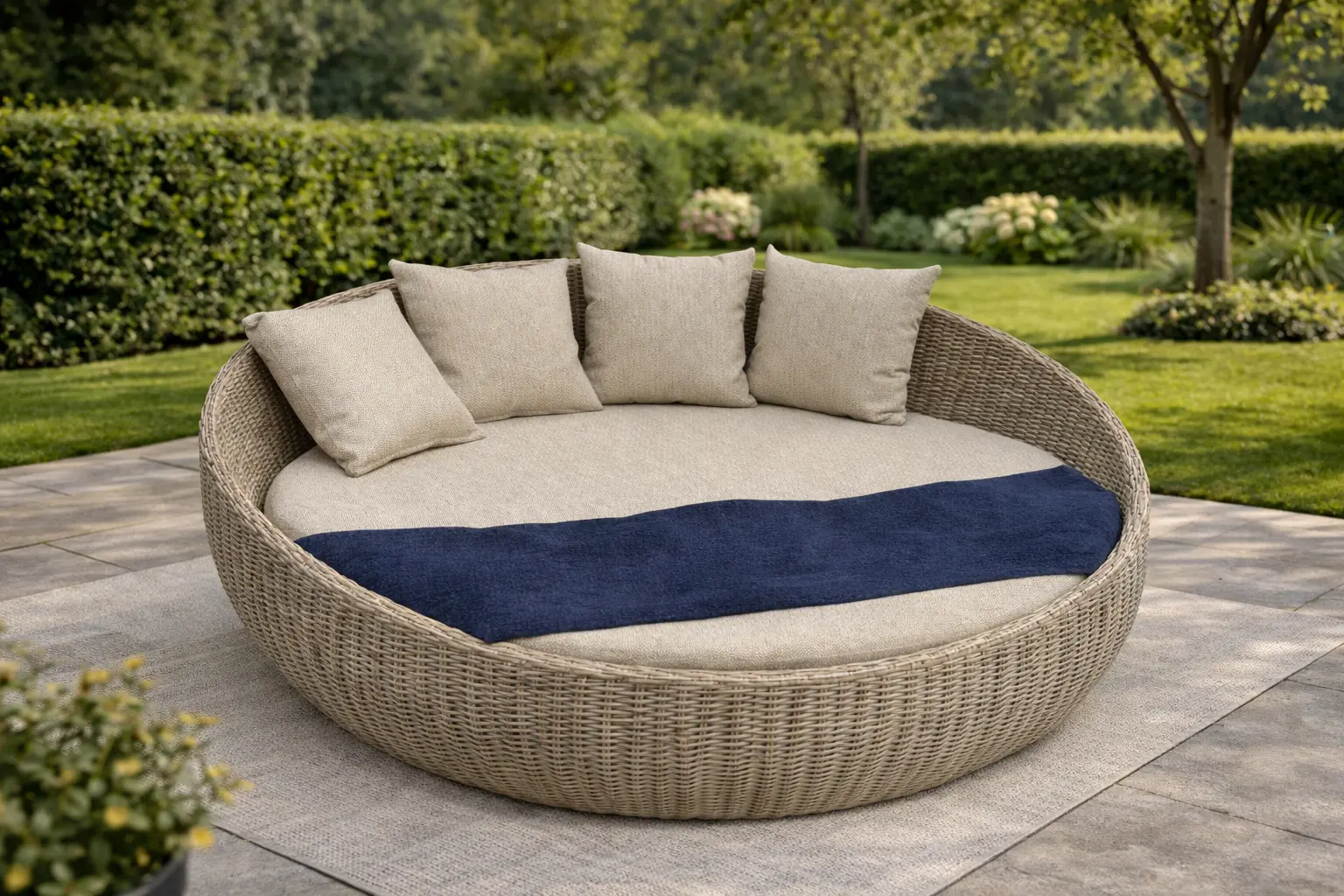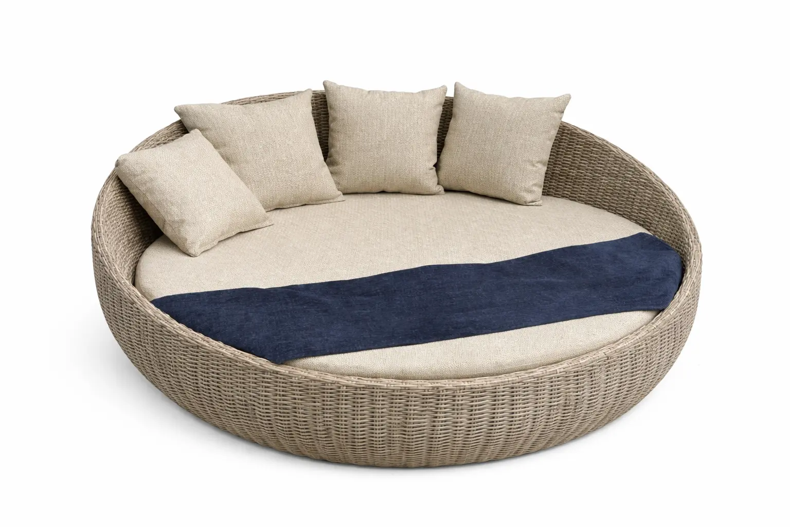 Create a personal resort in your own garden with this stunning circular daybed, expertly hand-woven for lasting elegance and comfort. Its robust, all-weather design makes it a maintenance-free centerpiece that provides a luxurious escape for reading, napping, or sunset lounging.