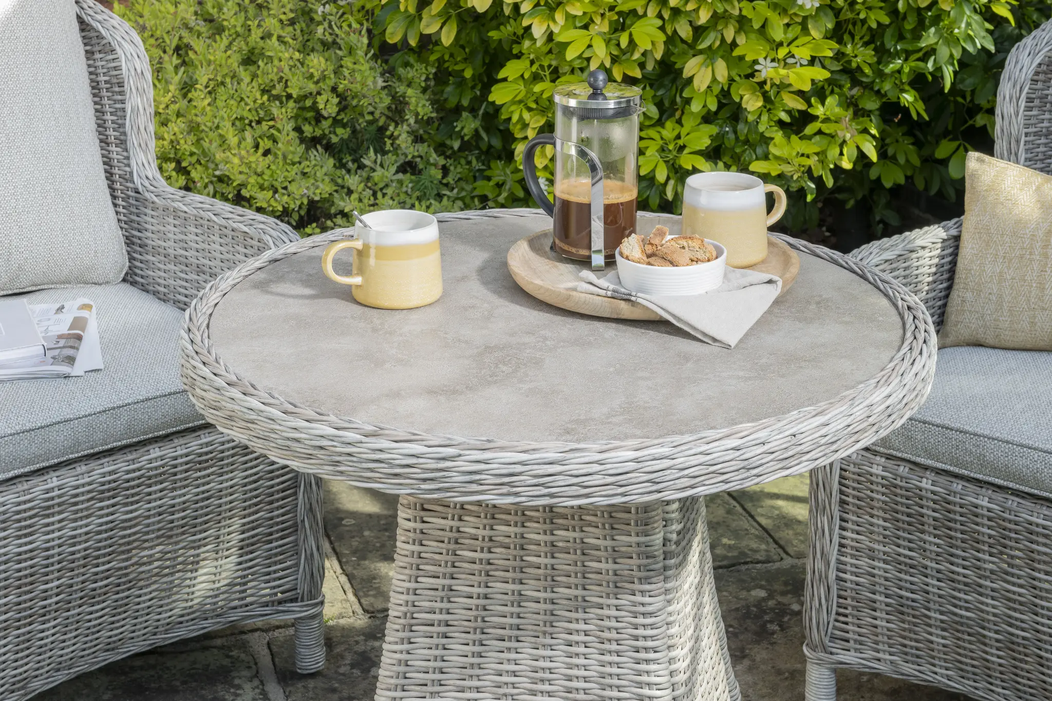 Upgrade outdoor living with the Wroxham Deluxe 2 Seater Set Beige from Norfolk Leisure’s Handpicked Collection, featuring durable aluminium framing and premium wide-weave poly rattan for lasting style. Designed for comfort and convenience, this compact garden furniture set includes all-season cushions with waterproof protection and a sleek ceramic glass-top table, perfect for low-maintenance alfresco dining.